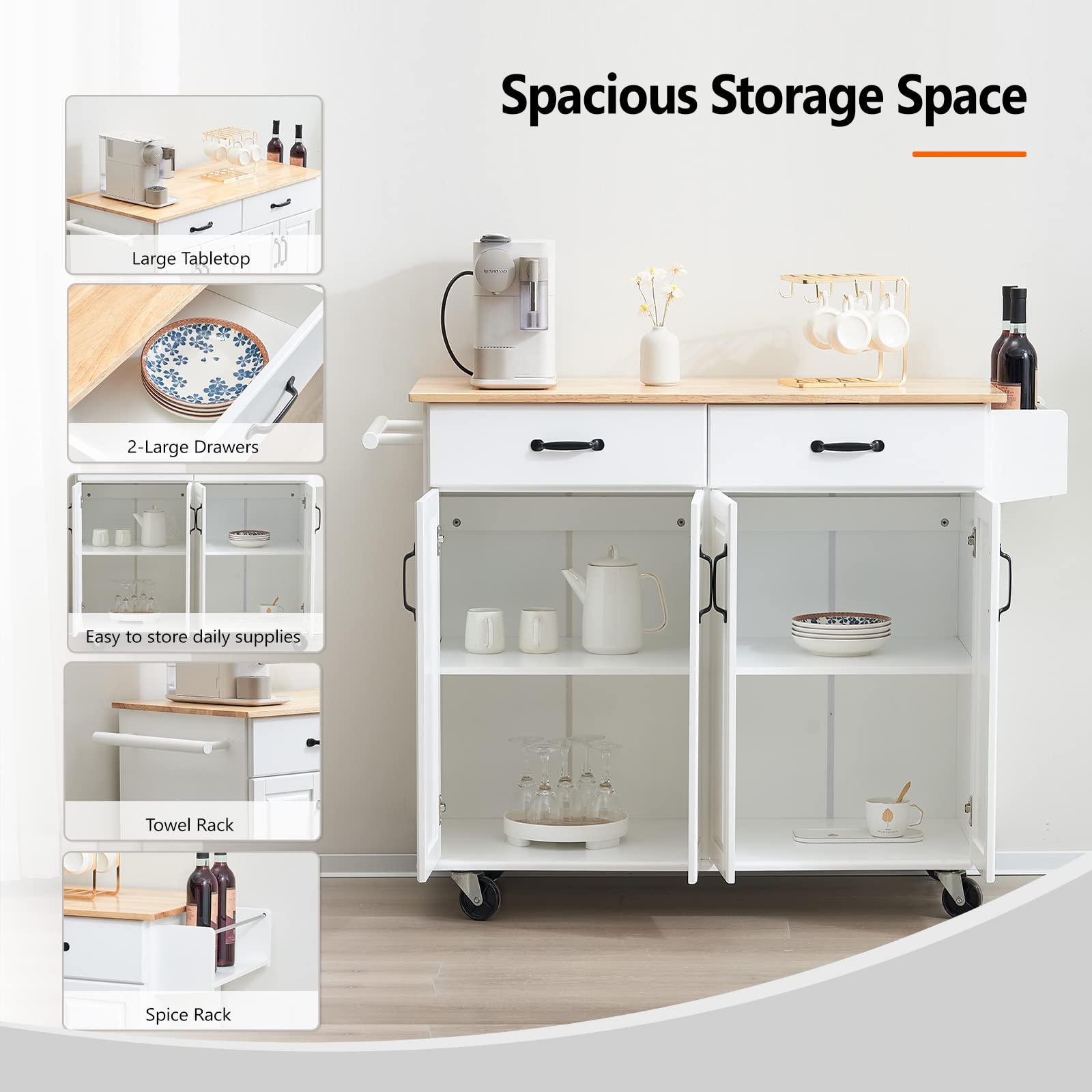 Kitchen Island Cart with Storage on Wheels White Rolling Coffee Bar Trolley