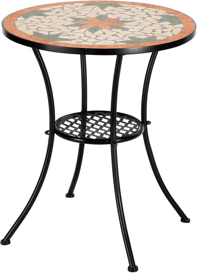 - Sturdy Construction: Built with a reinforced metal frame with anti-rust coating and a mosaic design print top, this table is sturdy and built to last, making it ideal for daily use.