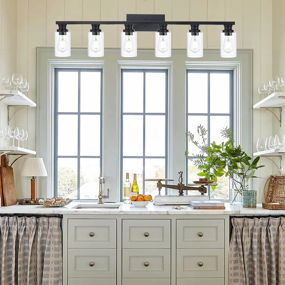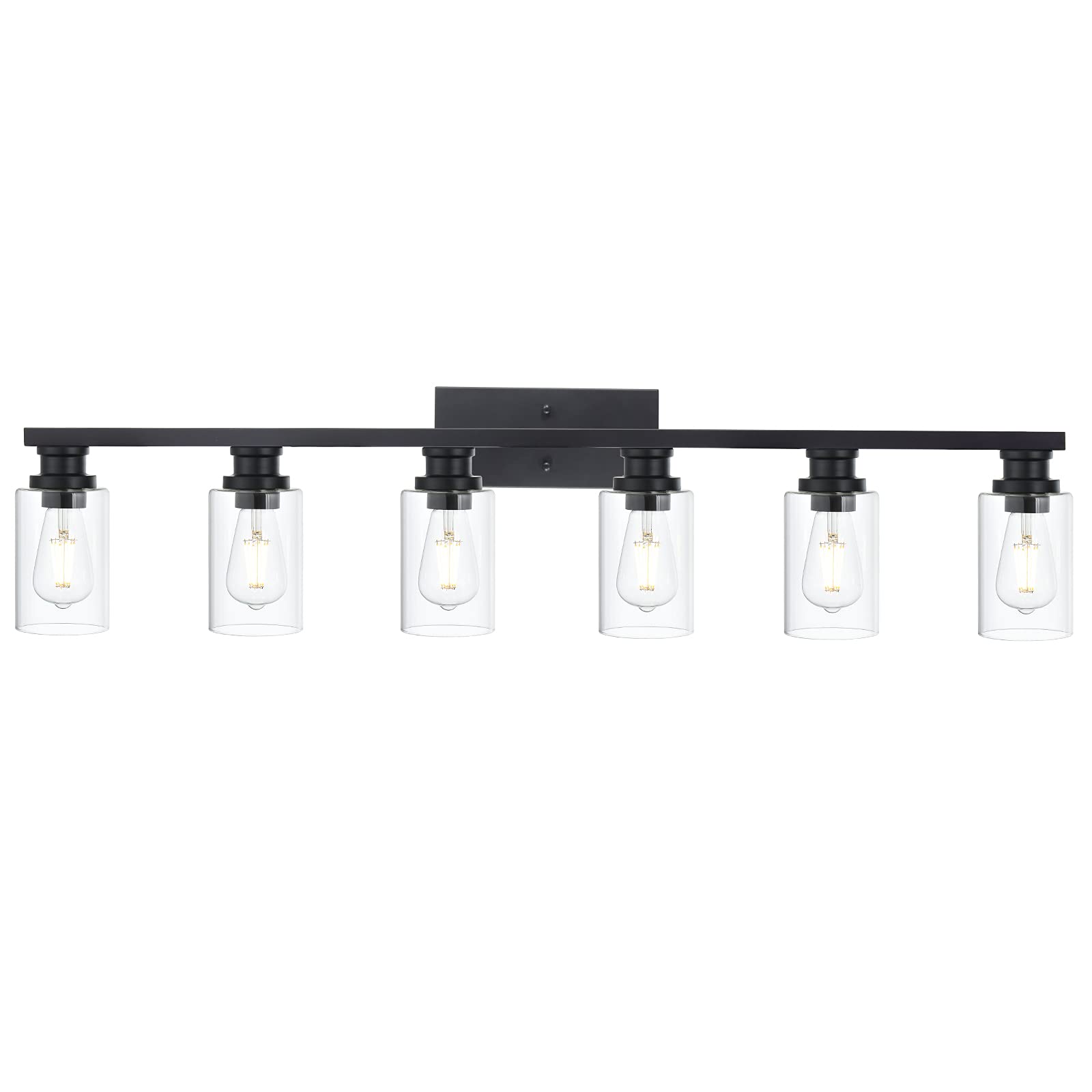6 Light Classic Bathroom Vanity Lighting Fixture,Matte Black Indoor Metal Wall Mount Light
