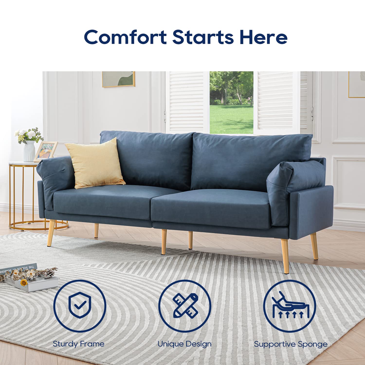 - ULTIMATE COMFORT DESIGN: The best part of this sofa is that you will enjoy its excellent seating feeling. Soft armrests, high-density seat cushions, plump back cushions, and upgraded foam, look fluffy and the seats are comfy. Fatigue will be swept away in this small couch.