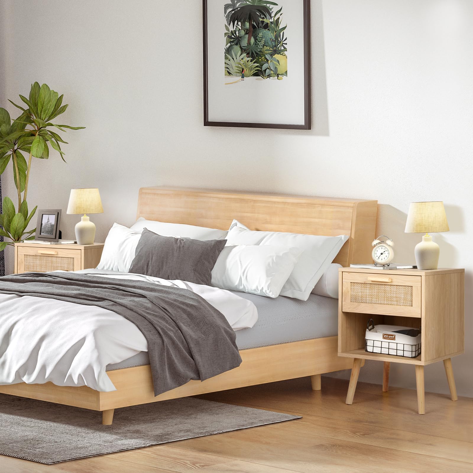 - RELIABLE QUALITY: Compact size and reliable quality, suitable for bedside. Rattan drawer design with shelves provides you with extra large storage space and increases the value of your purchase. Our rattan decorative nightstand is made of high quality density board and solid wood legs for long life.