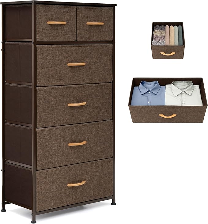 Fabric Dresser for Bedroom, Tall Skinny Dresser with 6 Drawers, Storage Organizer Tower