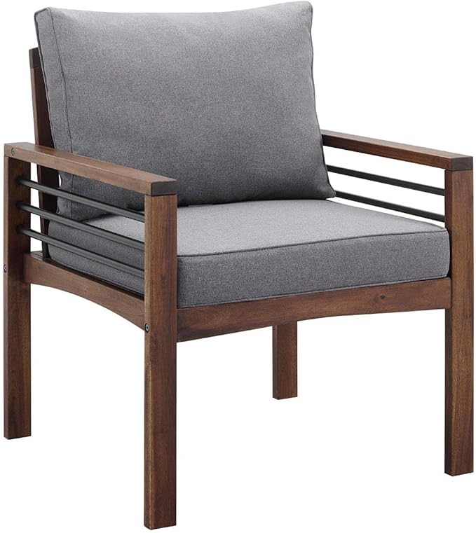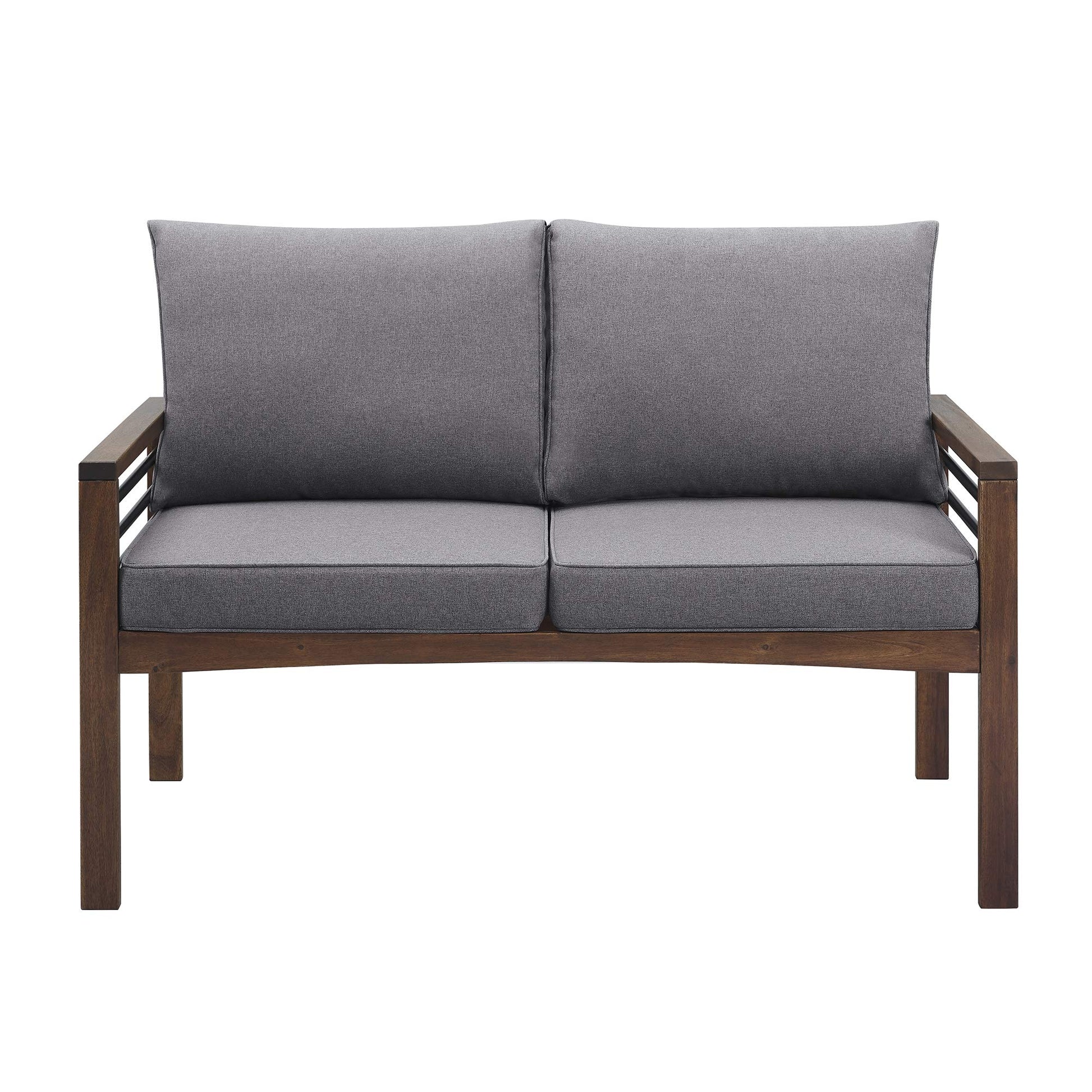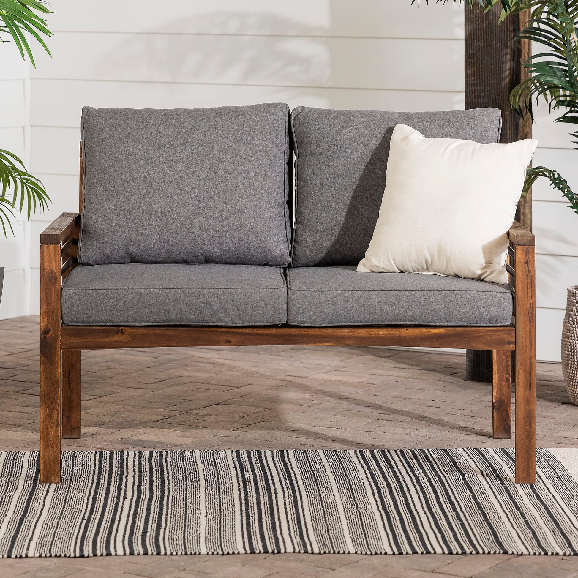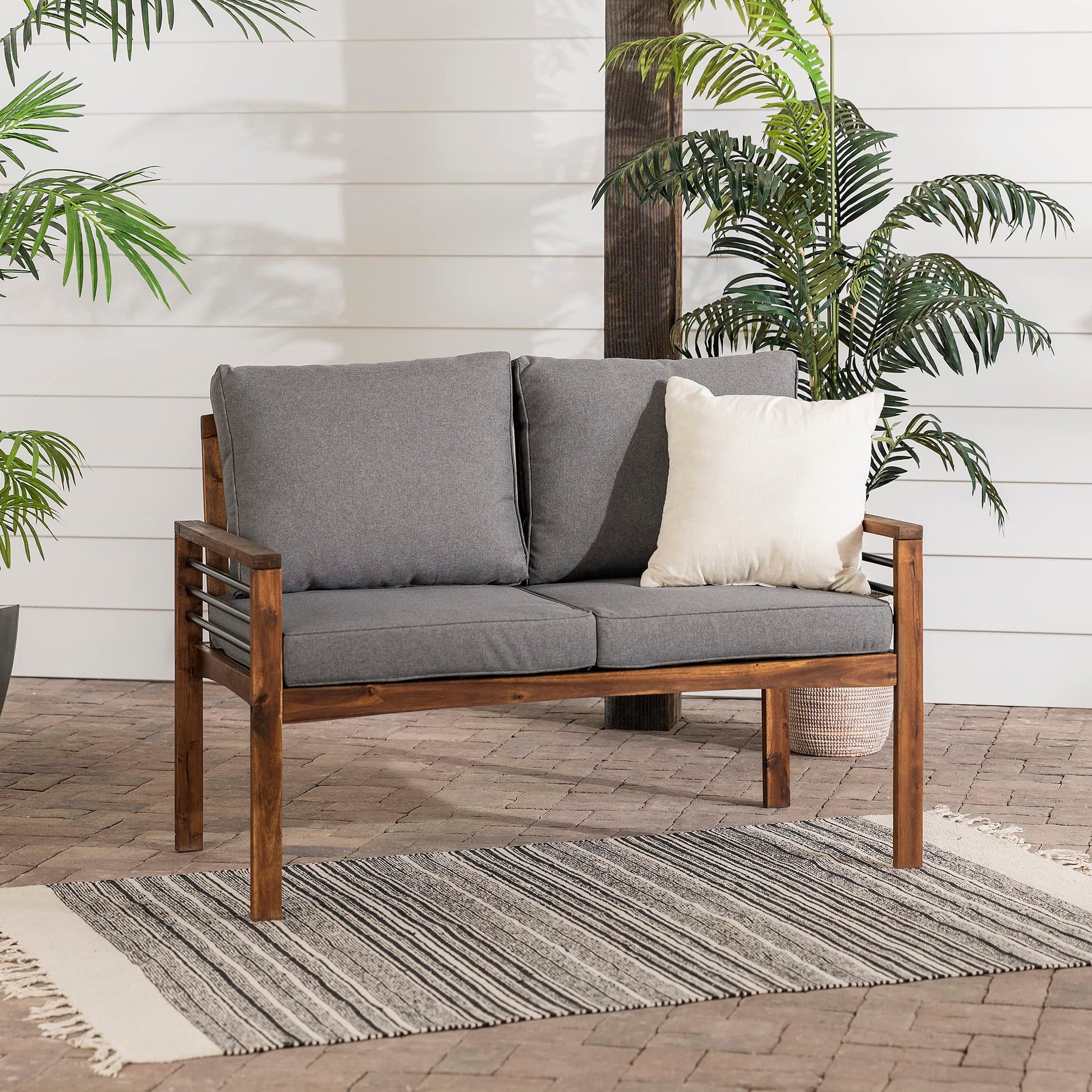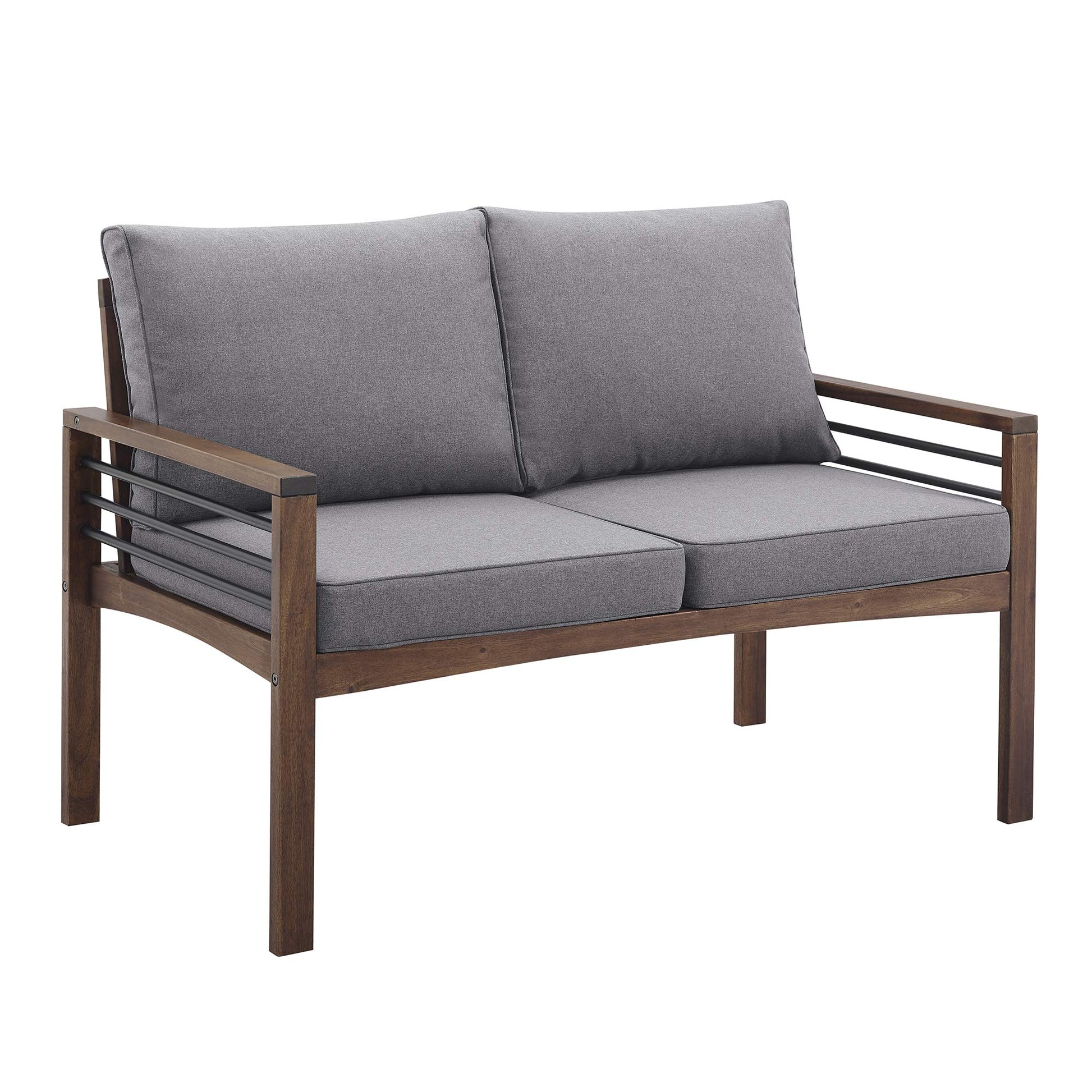 2 Person Outdoor Patio Modern Wood and Metal Loveseat with Washable Cushions