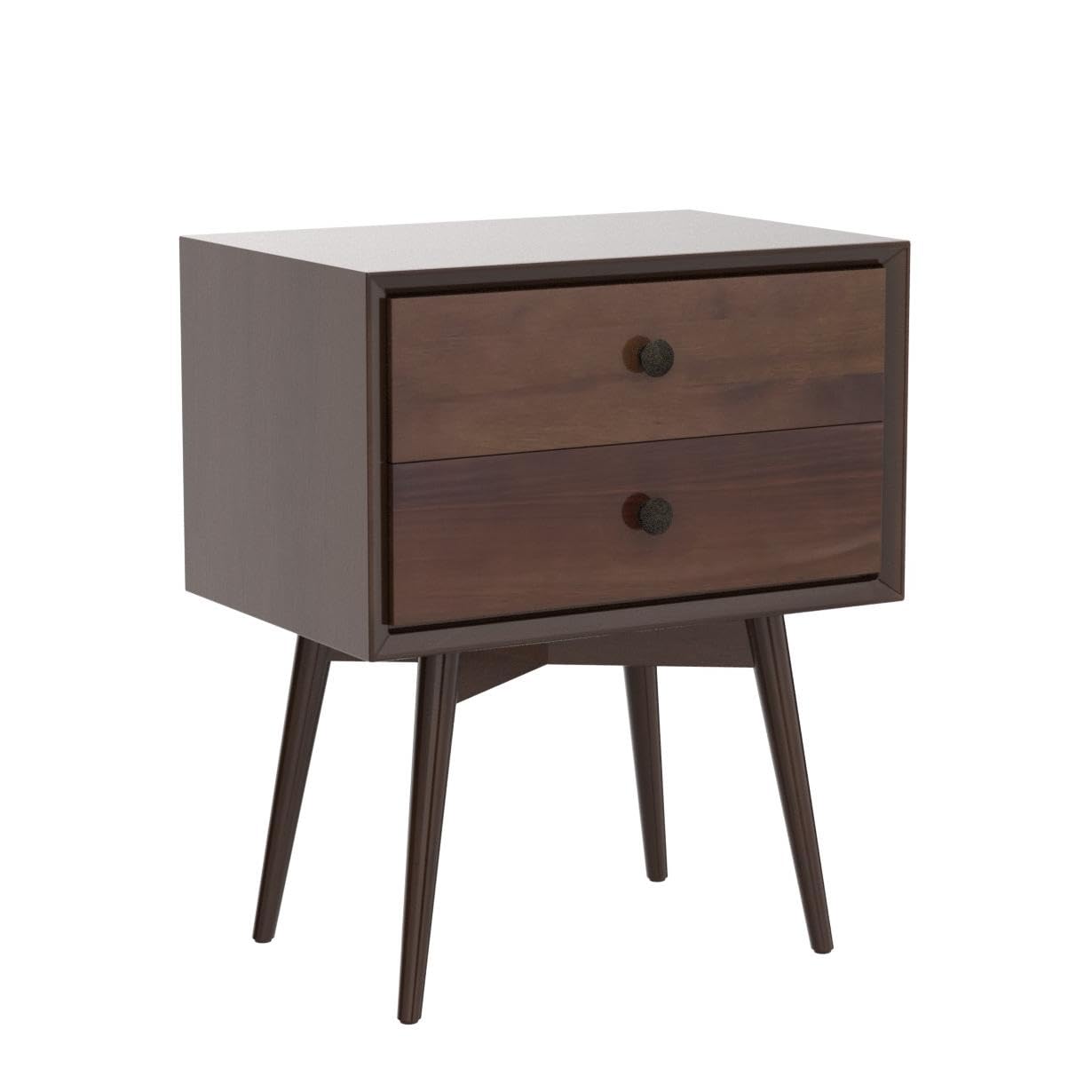 Ellwood Mid-Century Modern 2-Piece Solid Wood 2-Drawer Nightstand Set, 2 Pack