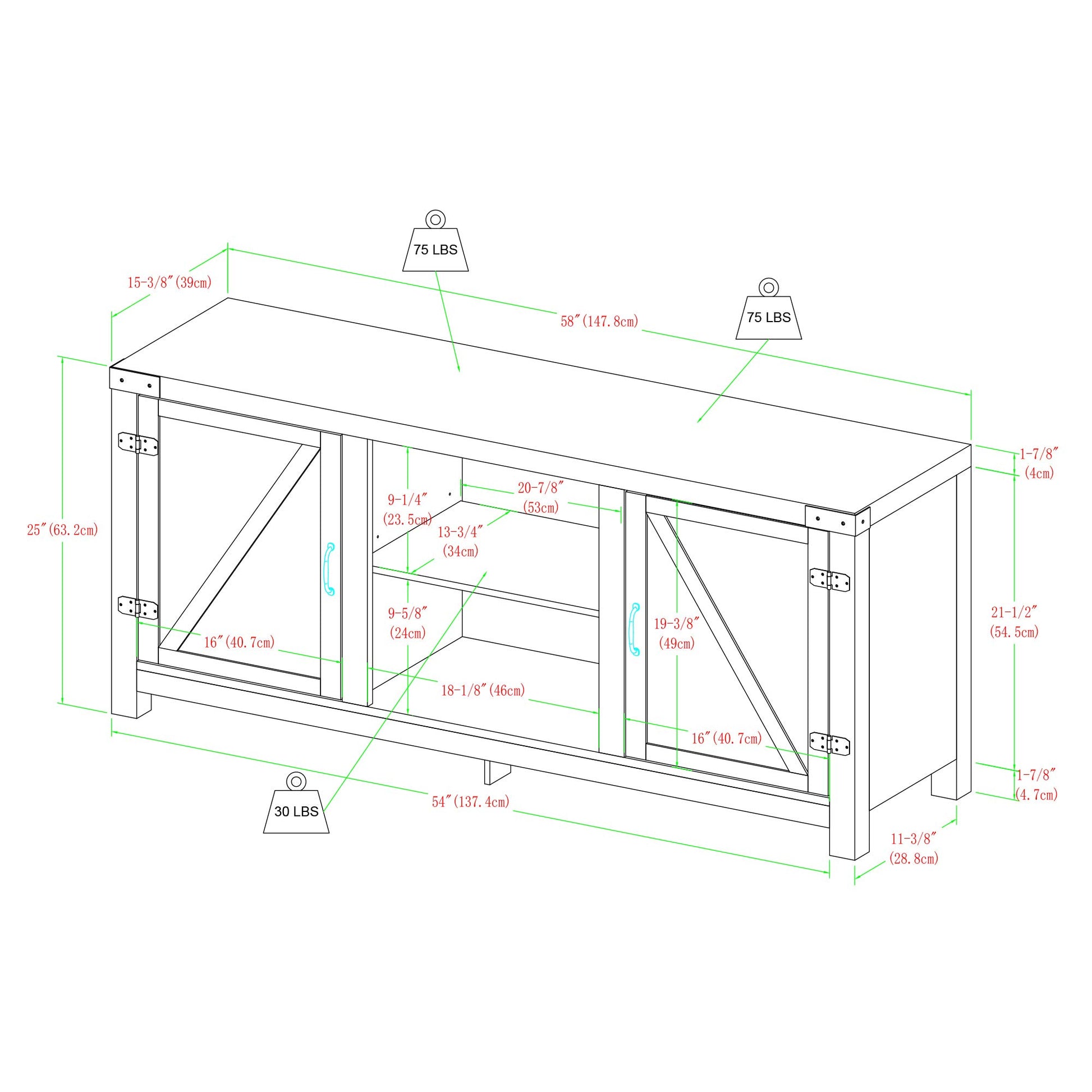 Larae Modern Farmhouse Barn Door Stand for TVs up to 65 Inches, Without Fireplace,