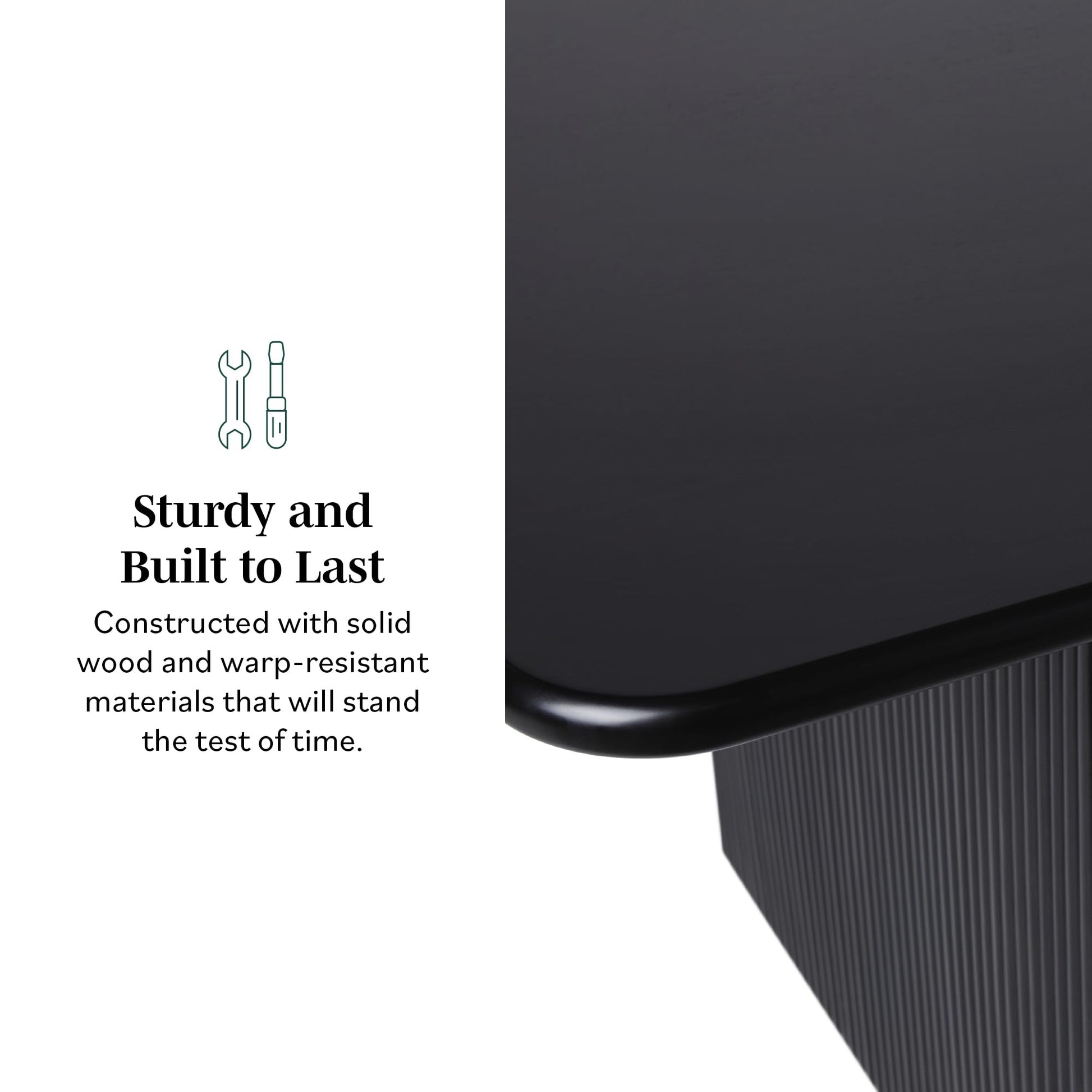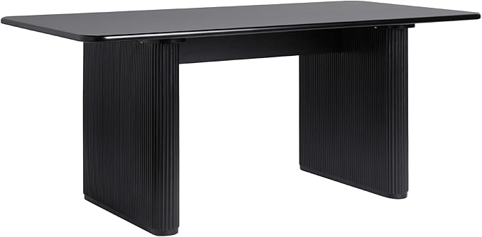 Modern Vertical Reeded Plinth-Base Dining Table, 68 Inch, Black