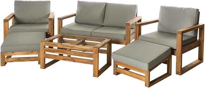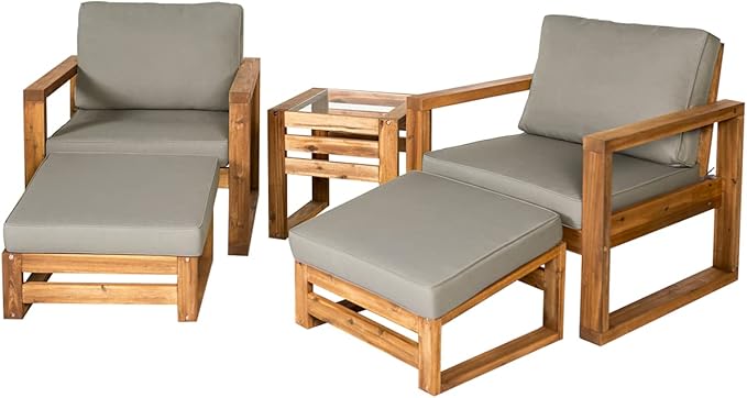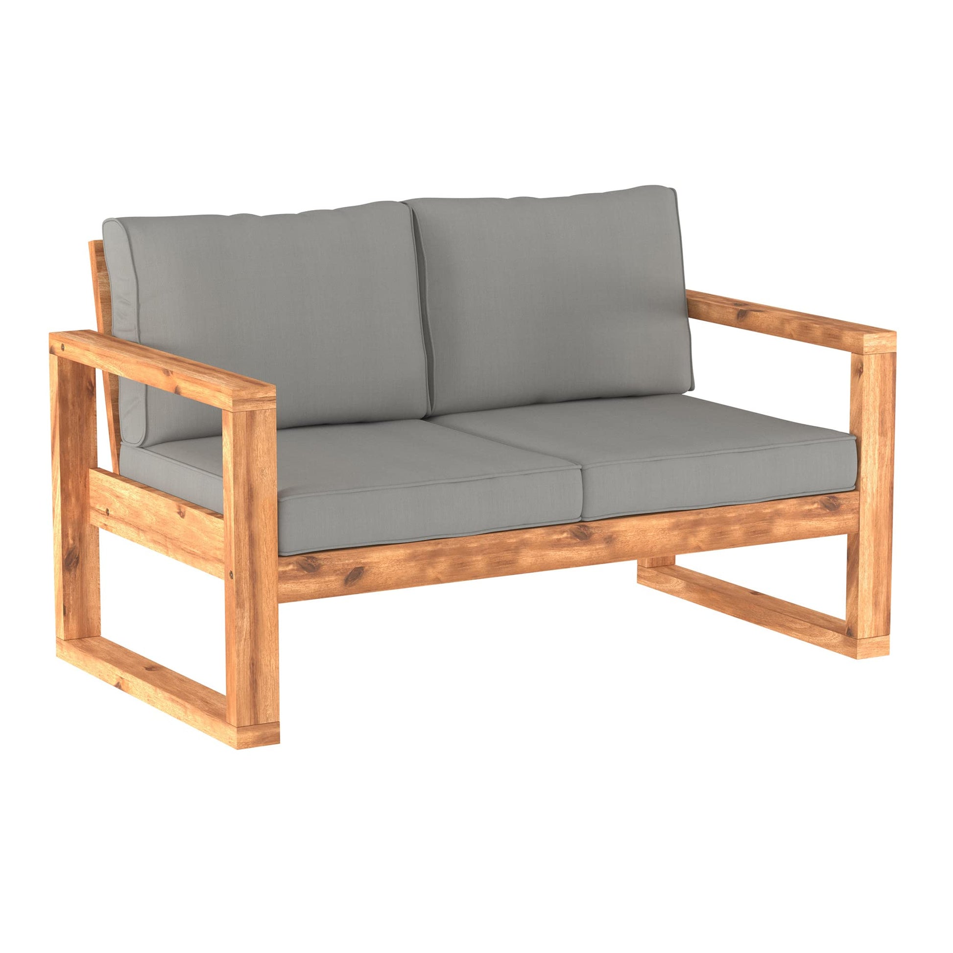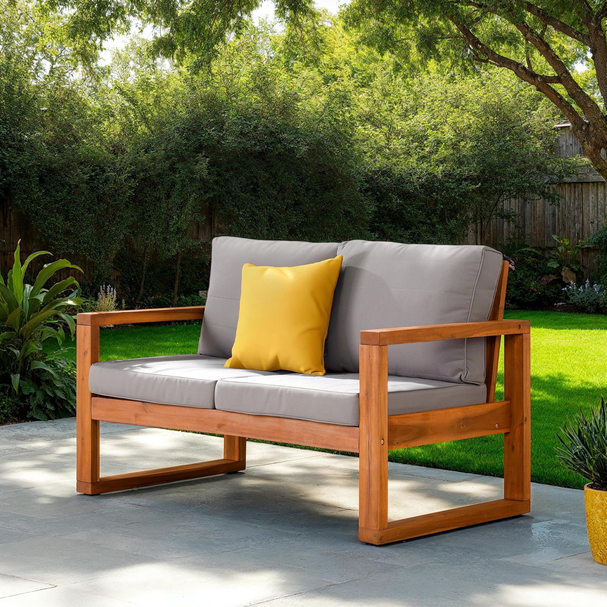 Sorrento Modern Acacia Wood Outdoor Loveseat with Cushions, 30 Inch, Brown