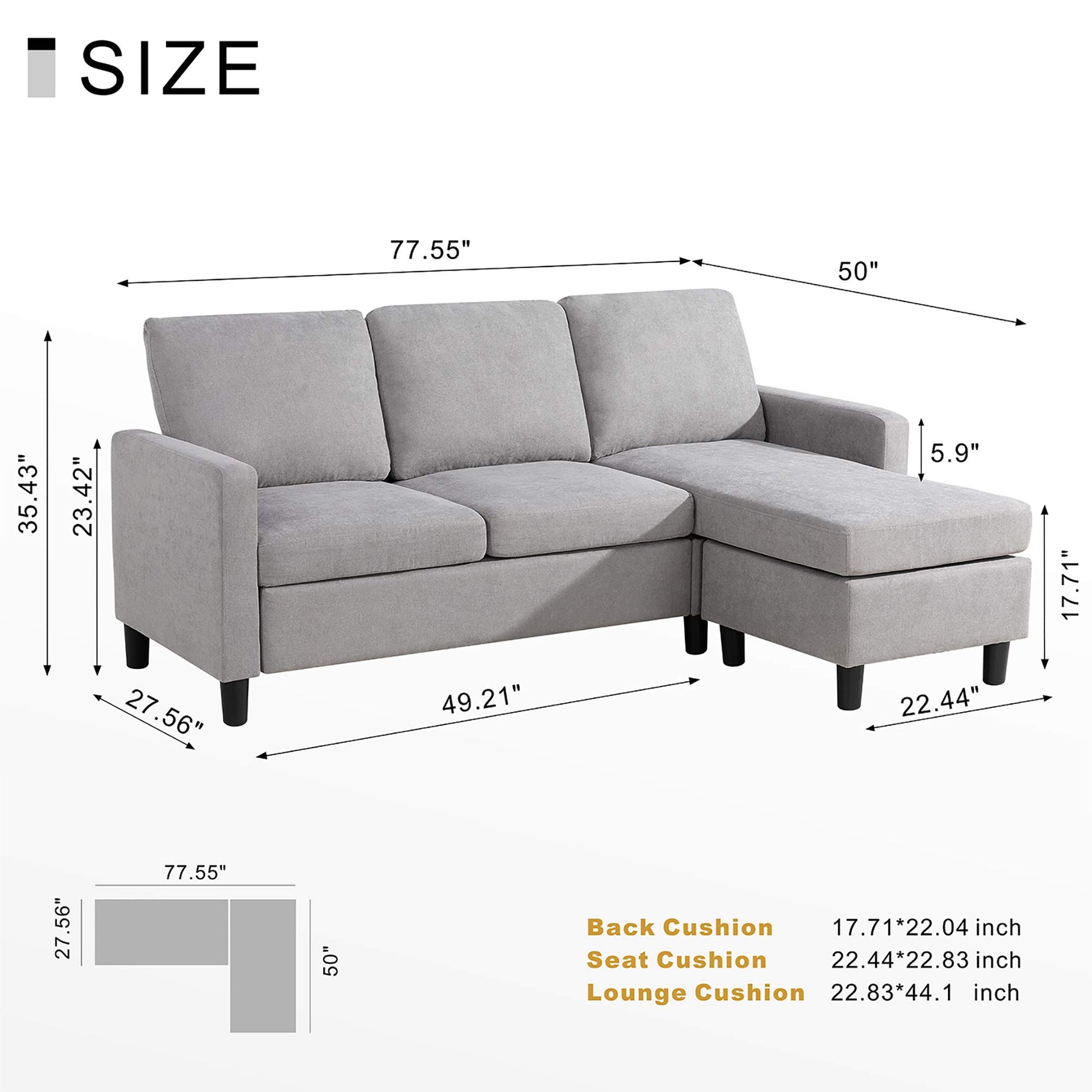 - Space Saving: Small space reversible sectional sofa. Perfect for my small apartment, upstairs loft and more.Couch dimensions: 77.55 x 27.56 x 35.43. Weight capacity: 660 lbs.