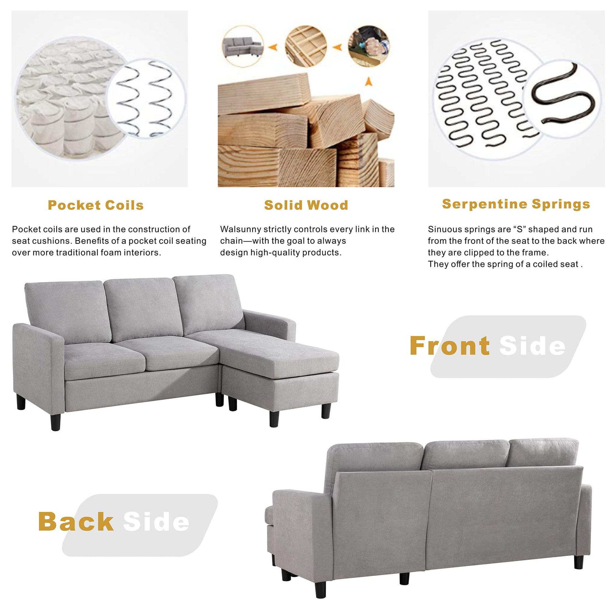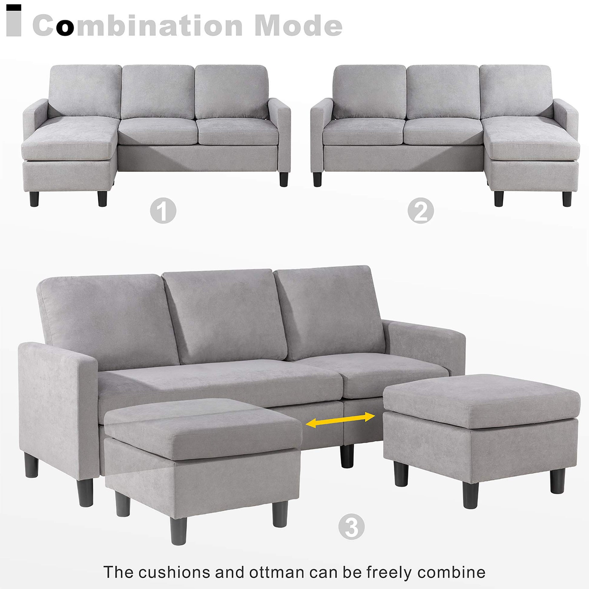 - Convertible Design: Sectional sofa with reversible chaise lounge. You can place the ottoman on either side of the sofa.