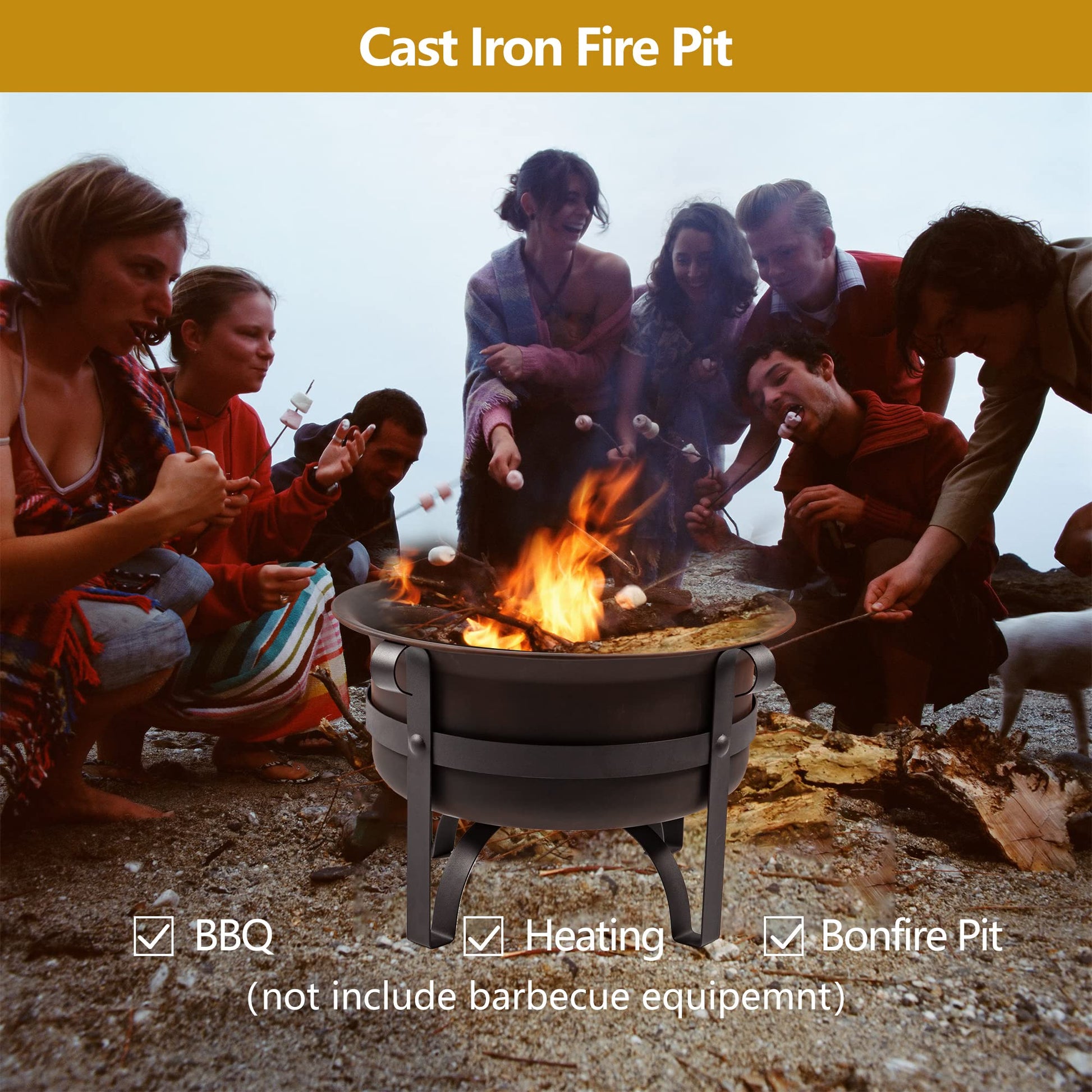 - Multiple Uses:Our round fire pit set Includes spark screen, poker, perfect for your family or friends spend relax&leisure time in outdoor entertaining,backyard,patio garden,camping tailgating, beach, picnic, parties, RV trips, which can be used as warmth, a fire pit, bonfire pit, BBQ grill