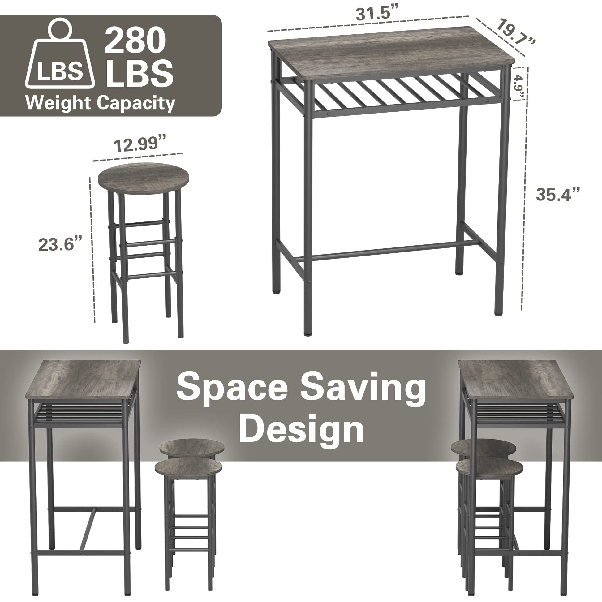 - DimensionTall Table Size: 31.5'' x 19.69'' x 39.37'' (L x W x H), this table will become a good extension to your counter top space. Barstools Size:12.99'' x 12.99''Lx 23.62''(L x W x H); Net weight: 38.5LBS, gross weight: 42.9 LBS. Easy assemble.