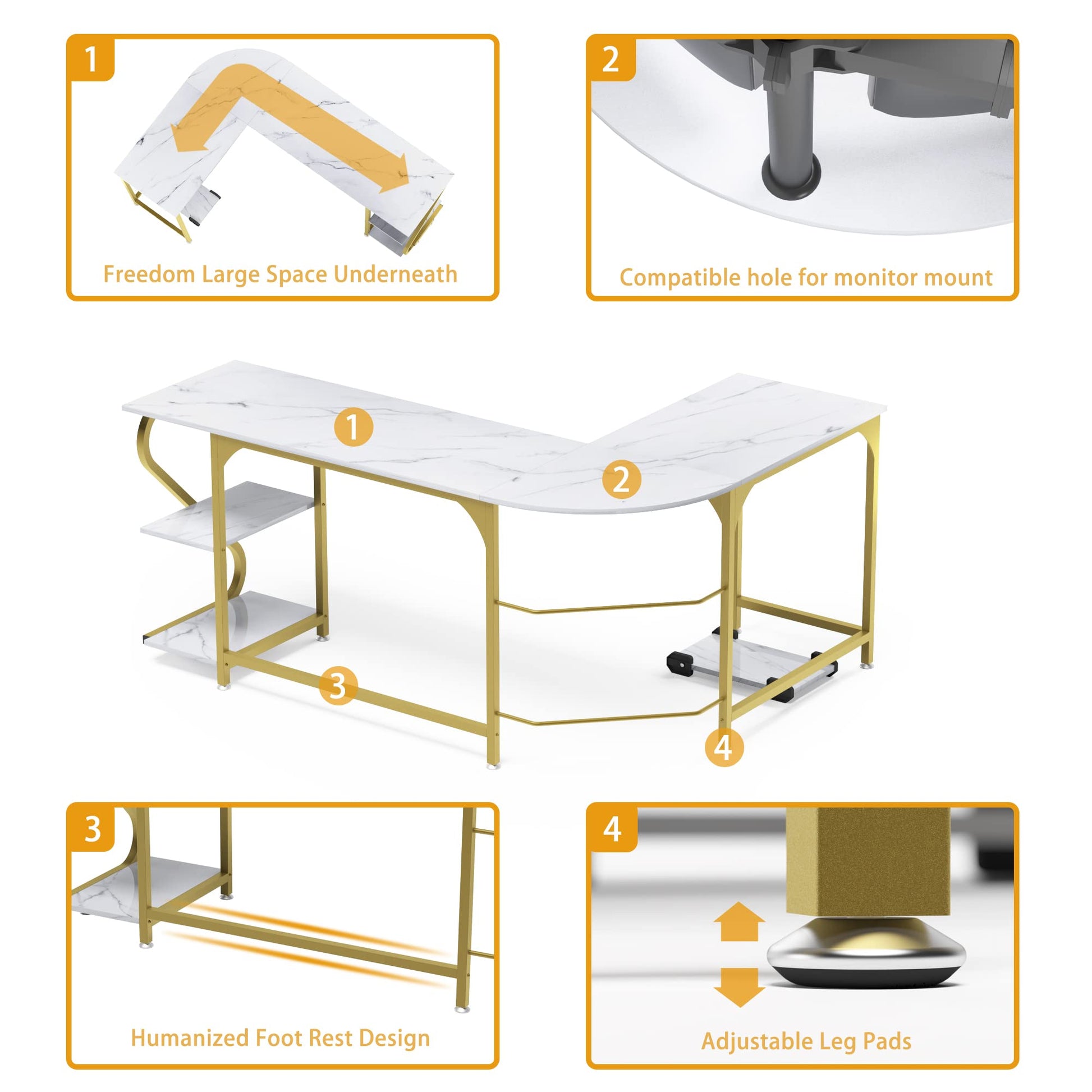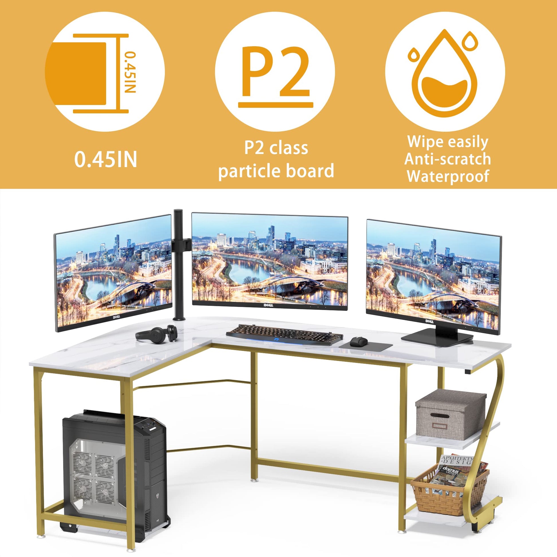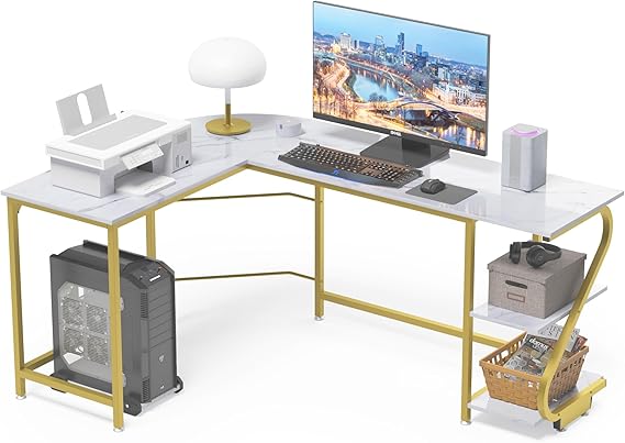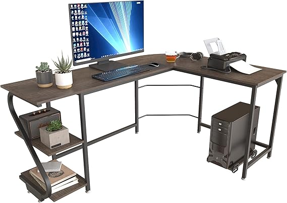 - Extra Storage Space] This l-shaped computer desk is designed with open 2-tier shelves, perfect to store books, documents, files, or small decorations. As an option, the top shelf can be removed to make room for a computer tower.