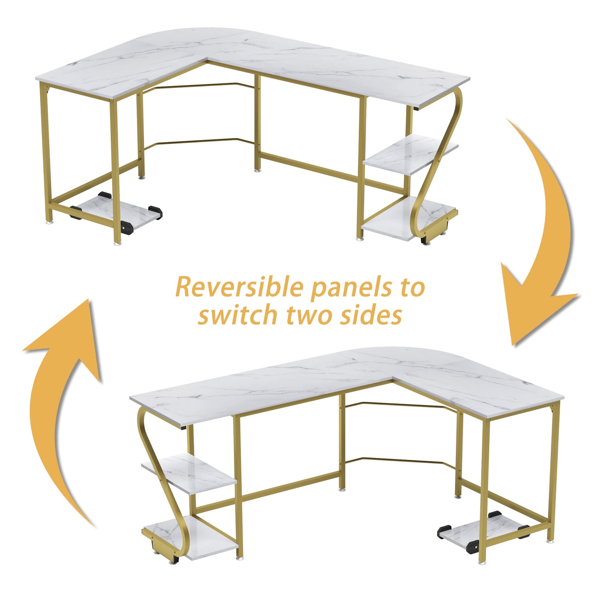 Reversible l Shaped Computer Desk with Storage Home Gaming Office Writing