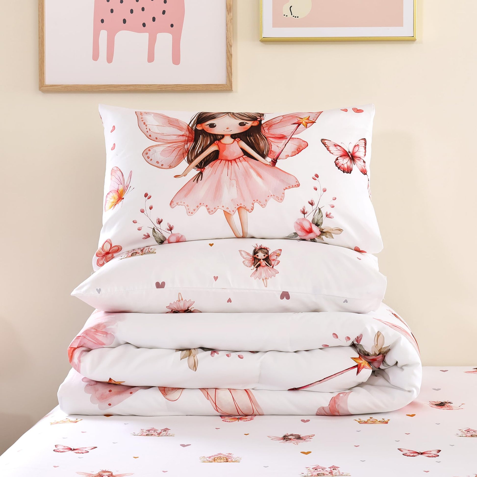 - 5 pieces Twin Size Comforter Includes 5 Pieces: 1 Comforter: 66" x 90", 1 Fitted Sheet: 39" x 75" + 14", 1 Flat Sheet: 66" x 96", 2 Pillowcases: 20" x 26".