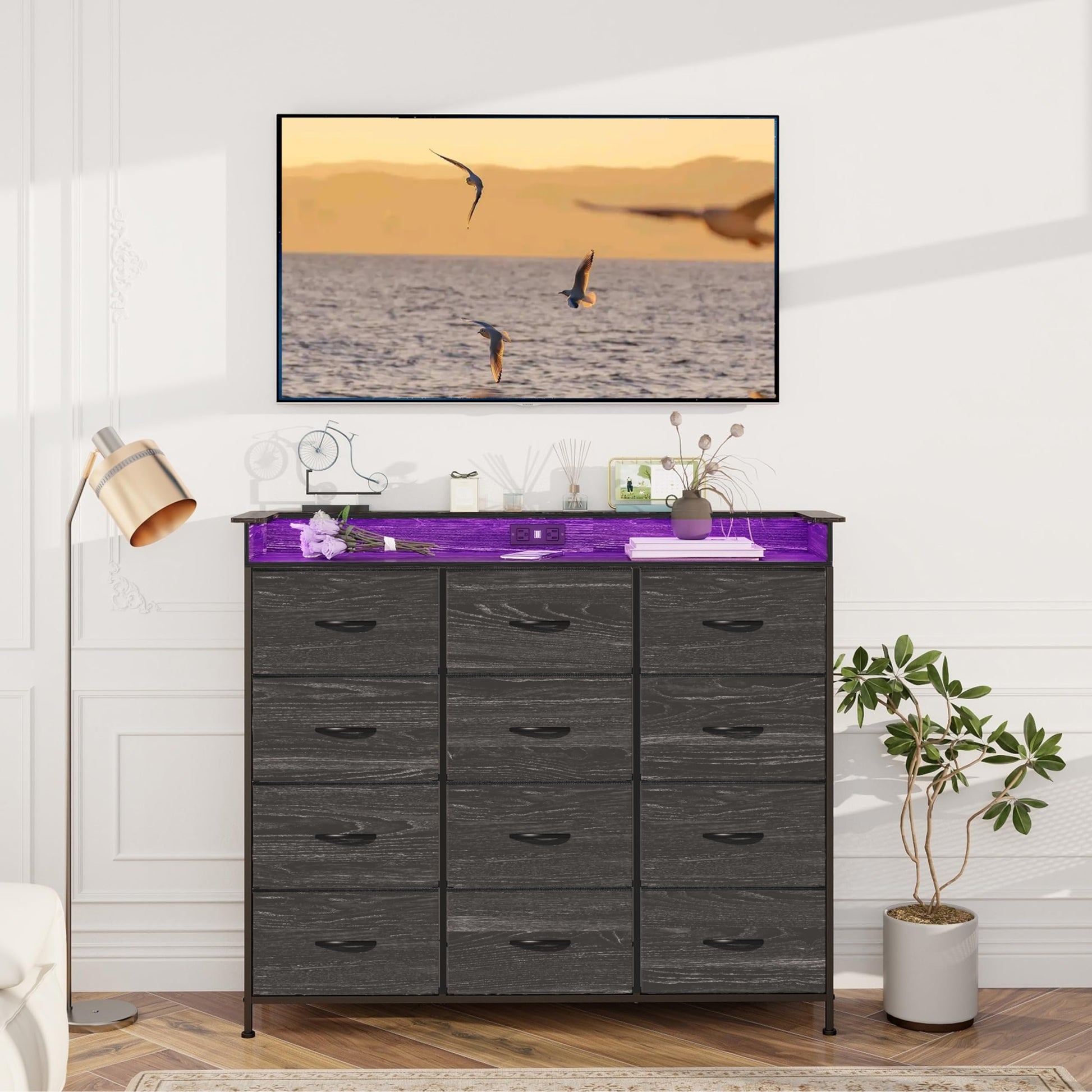 - Dresser with LED LightsThe dresser comes with RGB LED lights, it has 20 color changes, 21 Dynamic modes/ 8 Speed modes/ 8 Brightness modes. This LED lighting creates a cozy and inviting atmosphere, perfect for relaxing evenings and adding a touch of warmth to your space.