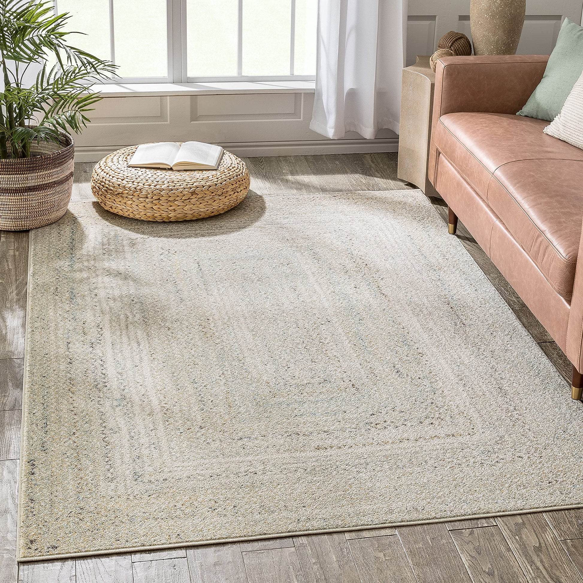 Raggi Vintage Ivory Green Chindi Braided Pattern Area Rug (3'11" x 5'3")