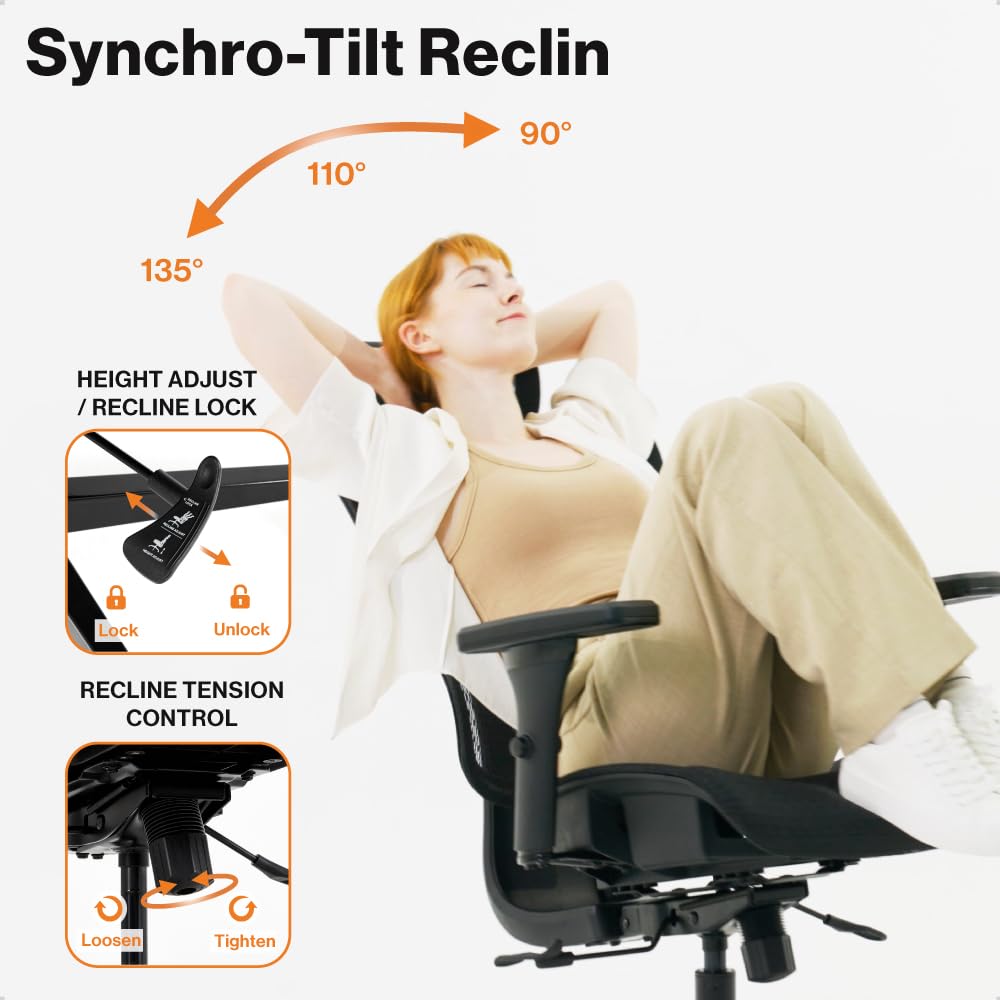 - The entire backrest and lumbar support moves up and down for your torso, while the seat depth adjusts from 19 to 21in for your legs. The vertical gas lift ranges 19 to 22.5in from floor to seat. And, this high back office chair fully reclines, locking at 90, 110 and 135deg. Sitting will never be the same again with Prestige’s 5 Fluid Systems of Comfort.