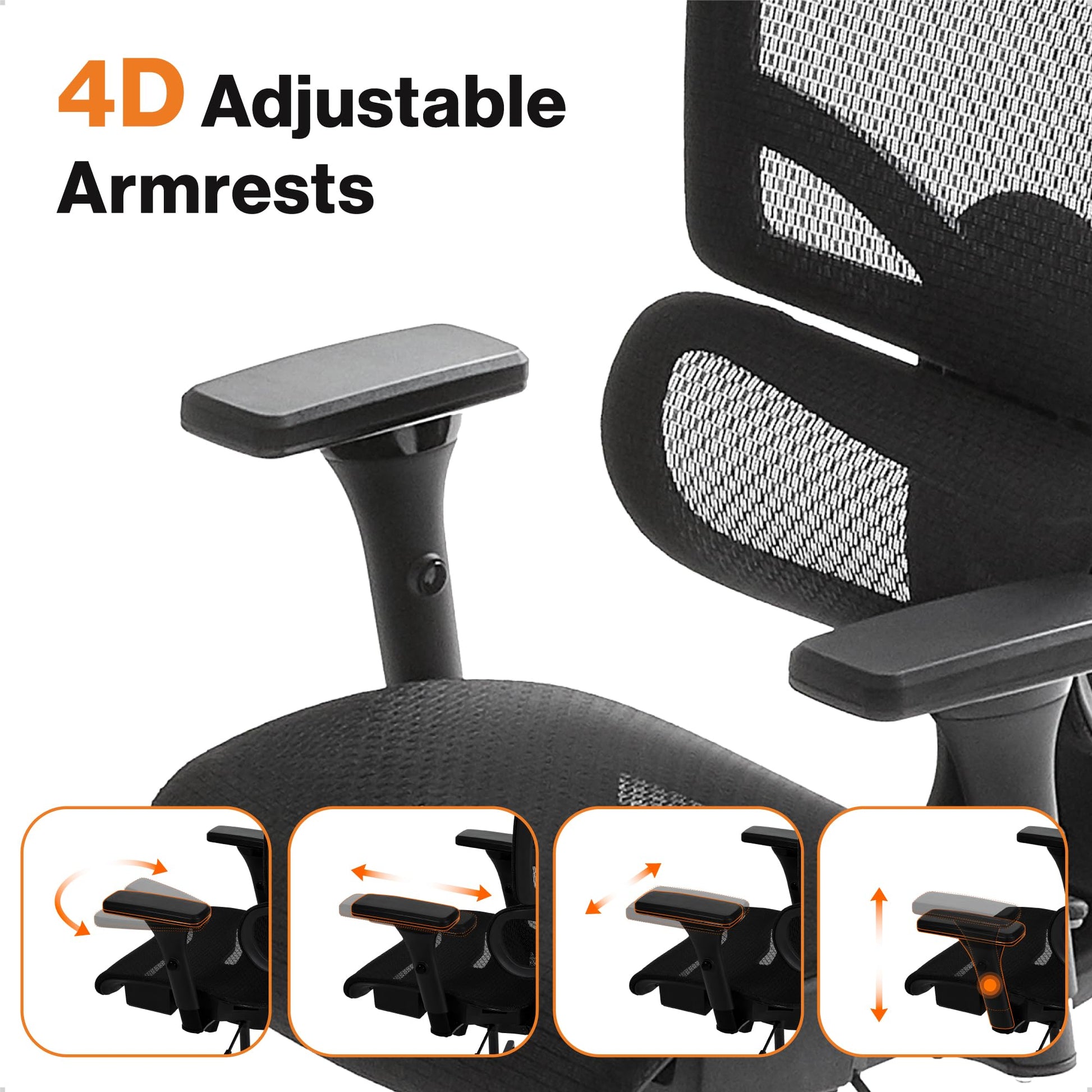 - Prestige Arms 1) slide forwards and back, 2) rotate in and out, 3) slide left and right and 4) up and down with a range of 26.3” to 30” from floor to arm. PU armrests are firm with a slight cushion for support. The office chair headrest attachment adjusts 1) vertically, 2) head angle and 3) base angle. Never endure uncomfortable head and neck placement again.