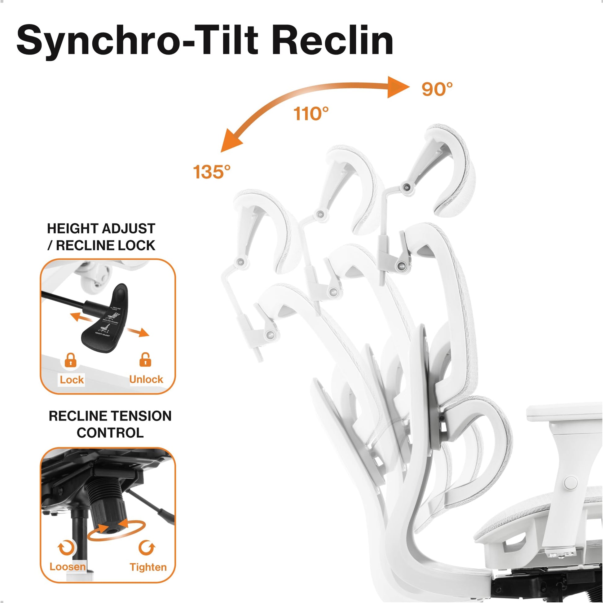 - MOVEABLE BACKREST AND SEAT DEPTH: The entire backrest and lumbar support moves up and down for your torso, while the seat depth adjusts from 19 to 21in for your legs. The vertical gas lift ranges 19 to 22.5in from floor to seat. And, this high back office chair fully reclines, locking at 90, 110 and 135deg. Sitting will never be the same again with Prestige’s 5 Fluid Systems of Comfort.