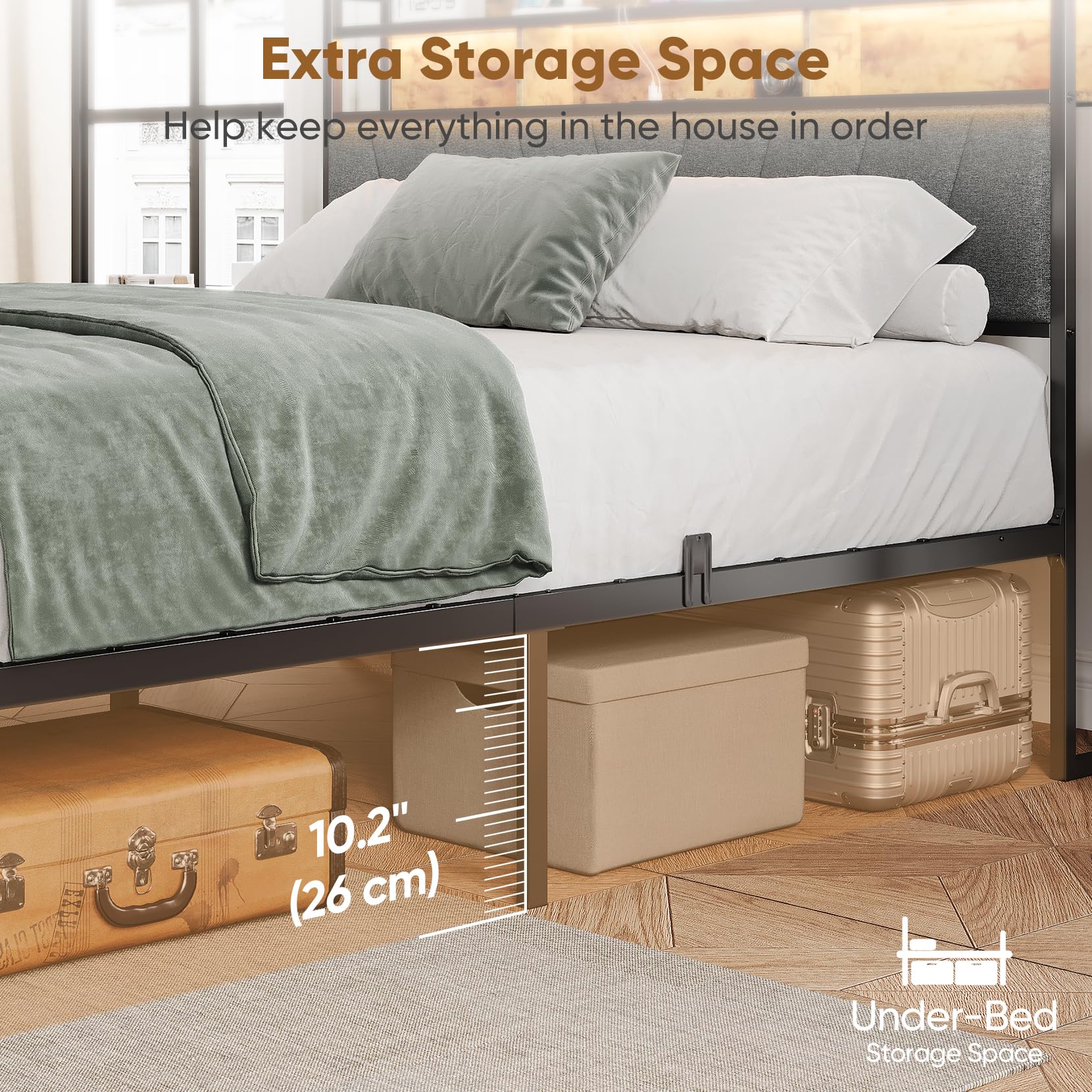 Queen Bed Frames, Metal Bed Frames with Charging Station, LED Lights Bed Frames