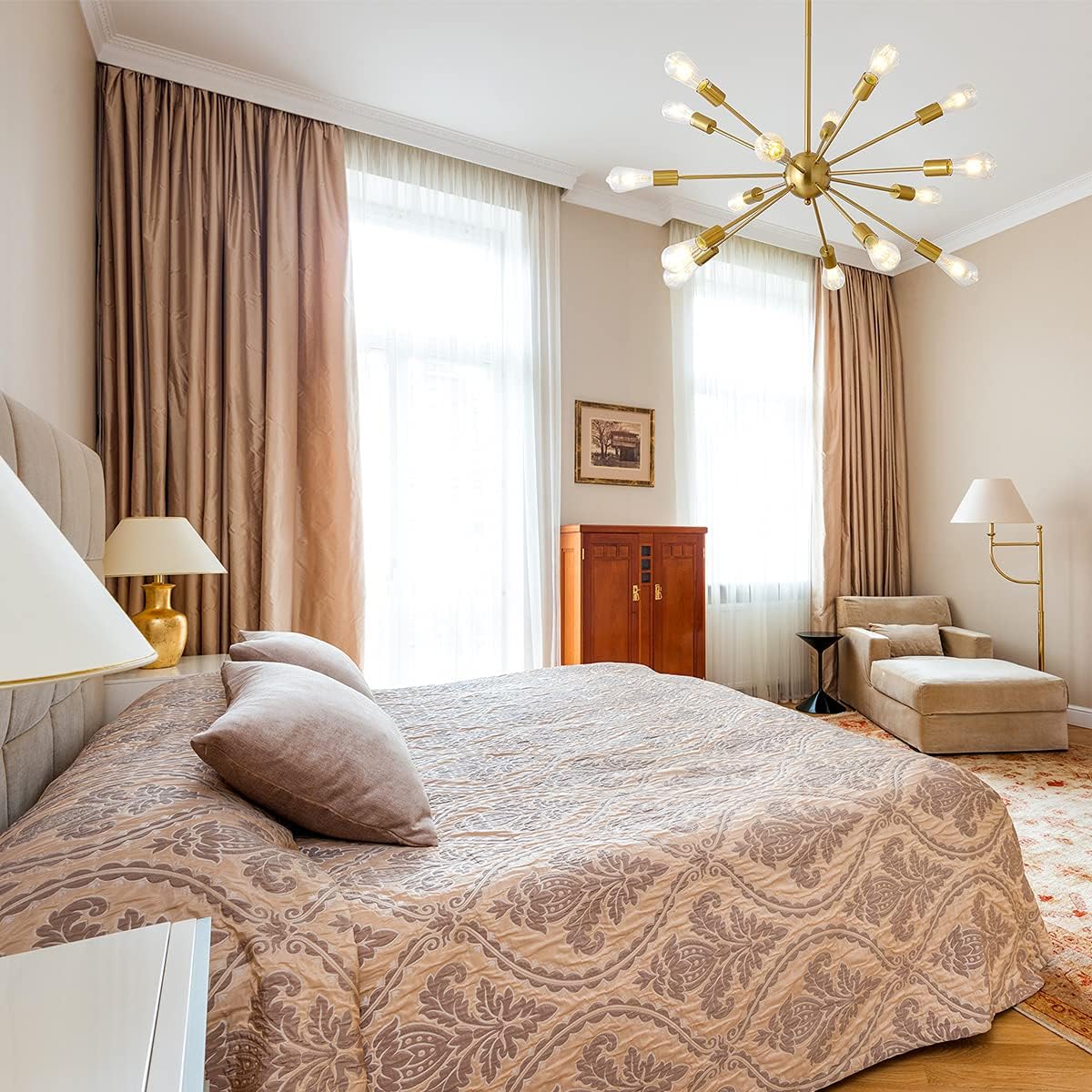 - Anti-Rust Modern Chandeliers The gold sputnik chandelier is made of premium metal in brush brass, which is anti-rust, durable and not fade. Whether you seek a new gorgeous showpiece for your dining room or are looking to add a luxurious touch to the bedroom, the gold light fixture chandelier is the perfect solution!