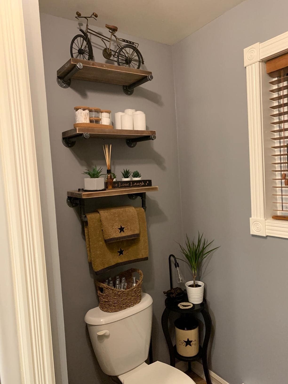 Industrial Pipe Shelving Shelves Bookcase Rustic Wood Metal Wall Mounted Towel Bar