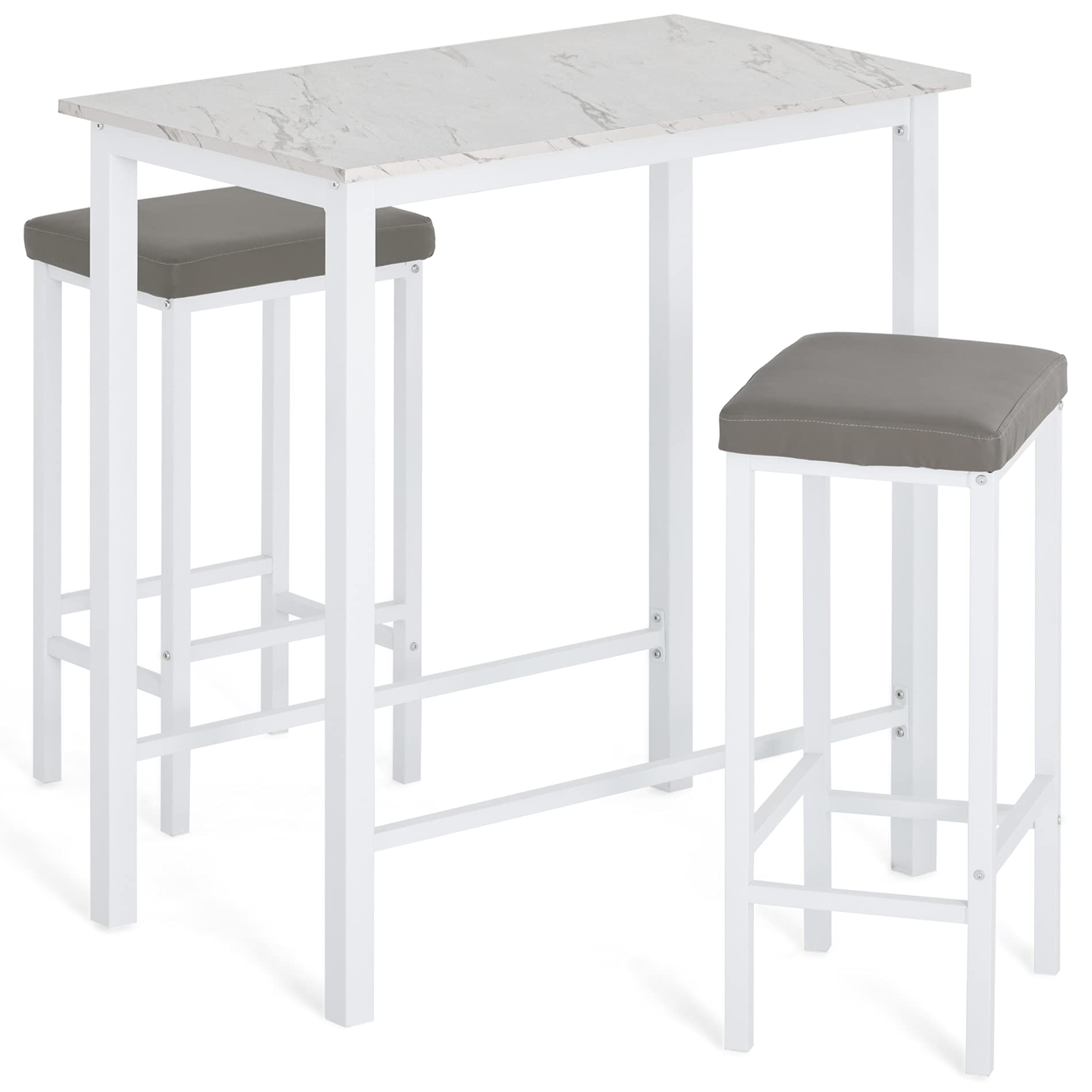 - Modern stylish counter height bar table and stool set with 2 soft cushioned seats, perfect size for apartments and small spaces, it also could be used as a breakfast nook, office study desk, writing desk, or Soho desk table.