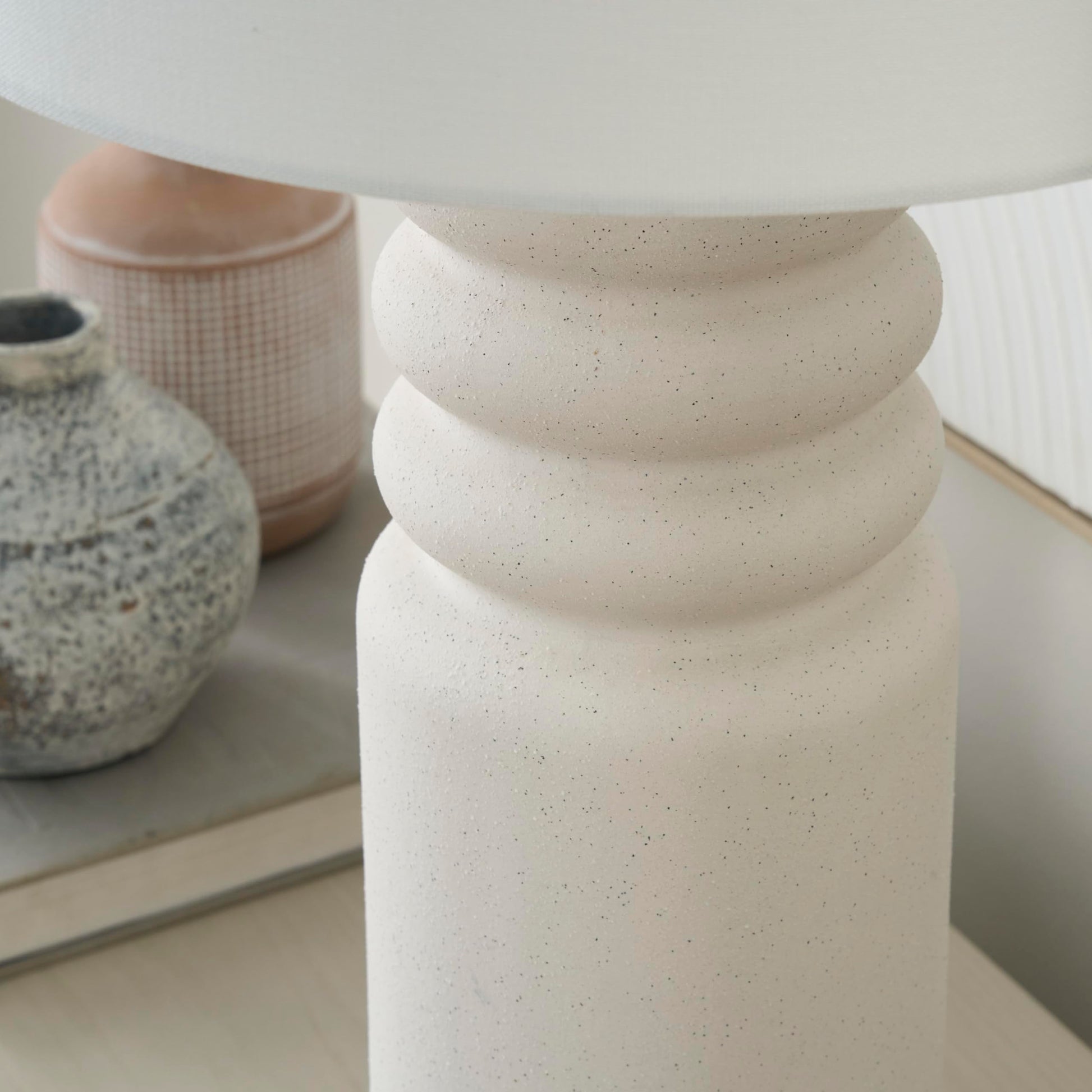 Crafted from high-quality ceramic with a tactile ripple pattern, this lamp serves as both a functional light source and an elegant decorative accent. The substantial height and sculptural form create a commanding presence while the neutral palette ensures seamless integration with your existing furnishings.
