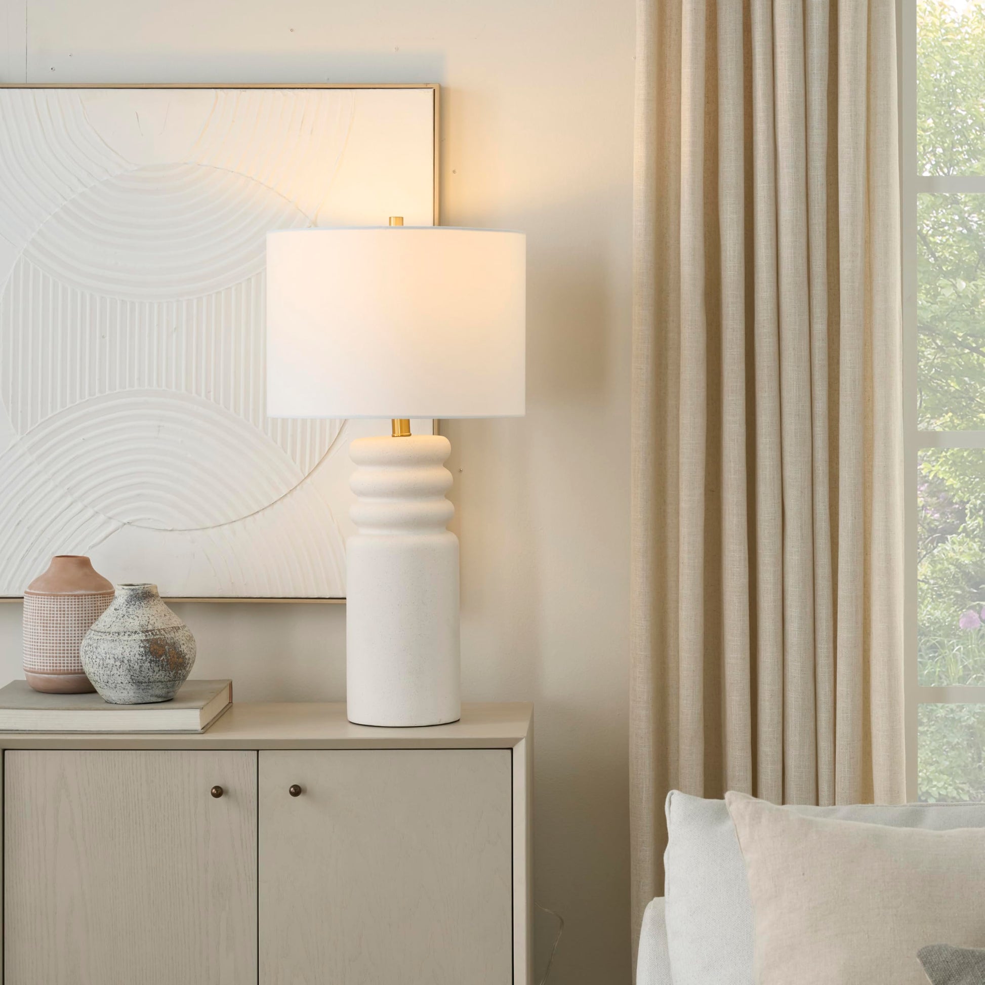 Elevate your interior with this striking 28-inch ceramic table lamp, featuring a distinctive ripple-textured design that adds depth and visual interest to any space. The pristine white finish complements modern, contemporary, and transitional décor styles, making it a versatile lighting solution for living rooms, dining areas, bedrooms, and bedside tables.