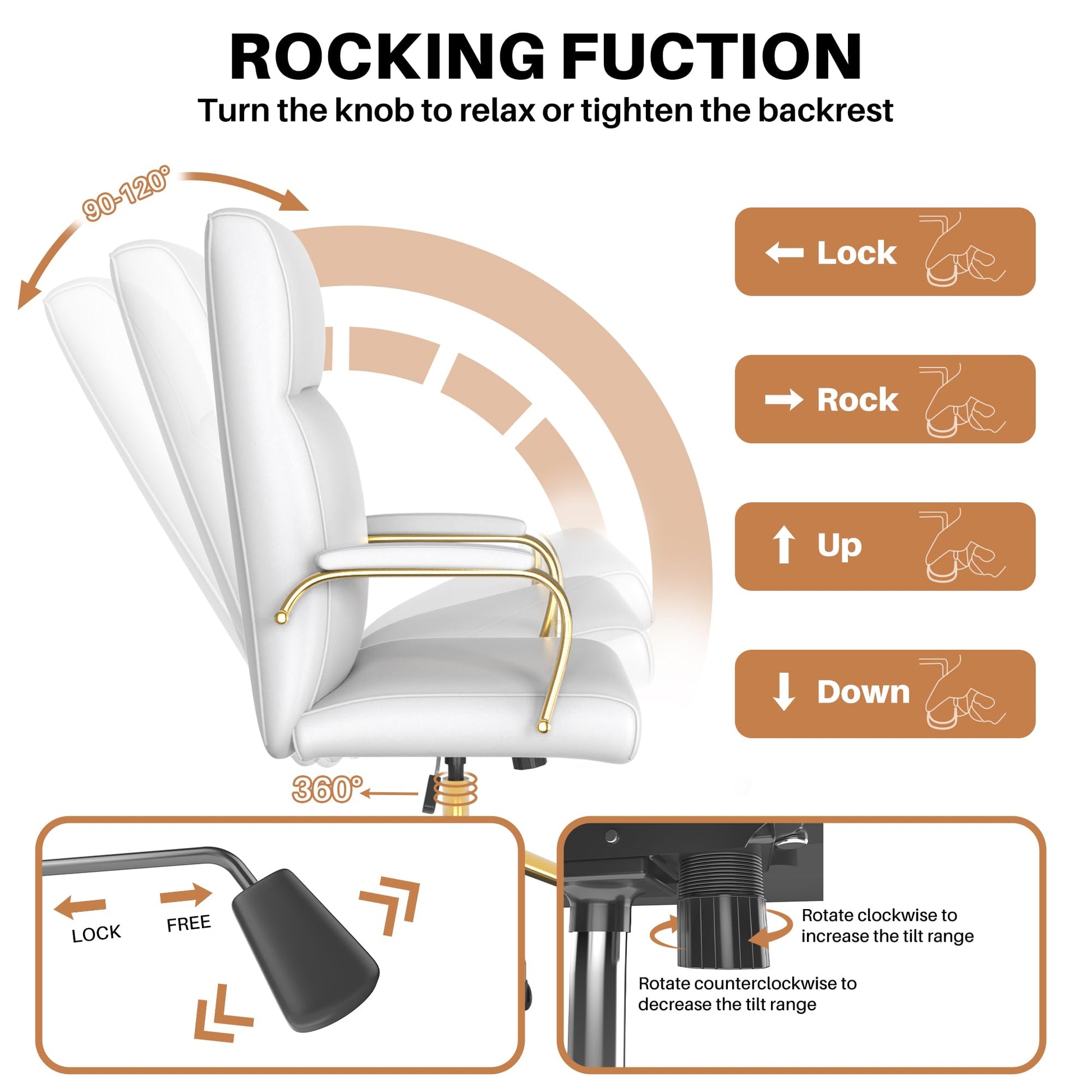 Elevate your workspace with this premium white and gold office chair, designed to deliver exceptional comfort and sophisticated style. Featuring plush memory foam cushioning and high-back support, this executive desk chair is perfect for long work sessions, providing the ergonomic support you need throughout the day.