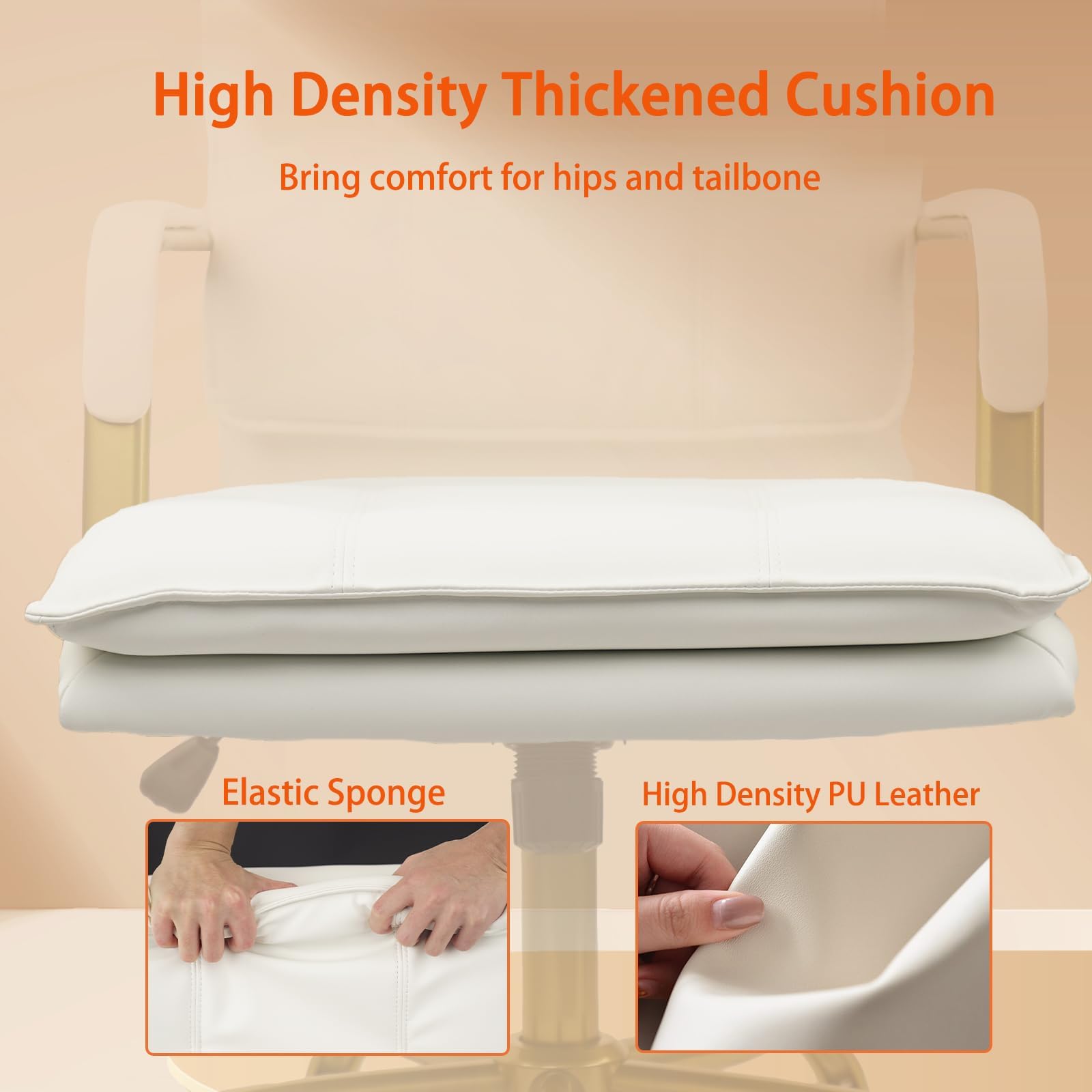 Elevate your workspace with this sophisticated mid-back office chair that seamlessly blends comfort, style, and functionality. Upholstered in premium leather with striking golden legs and arms, this swivel task chair delivers executive-level aesthetics at an accessible price point.