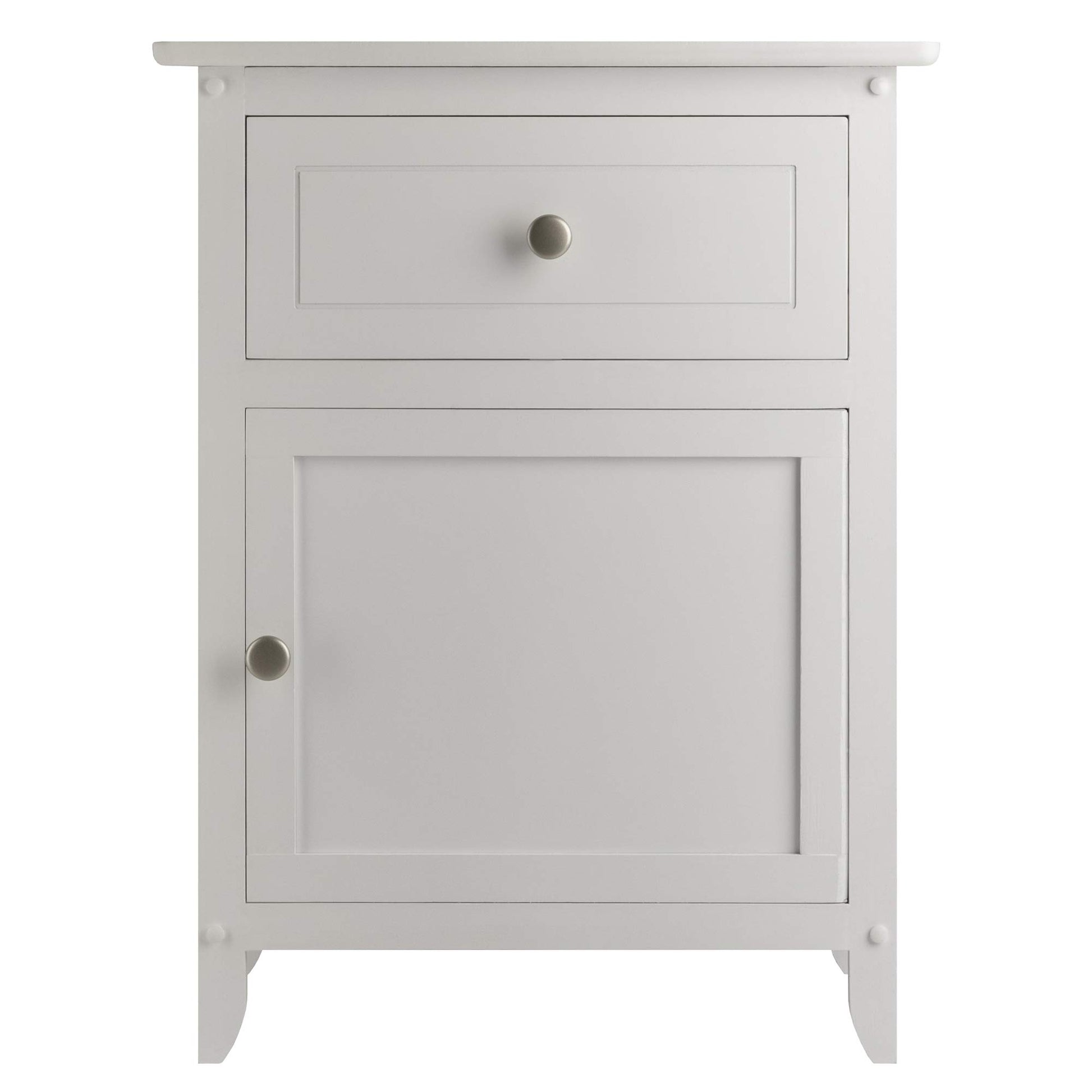 - Wood night stand finished in white.Assembly Required.Material:Wood.Item Dimensions:18.9" L x 14.9" W x 25" H