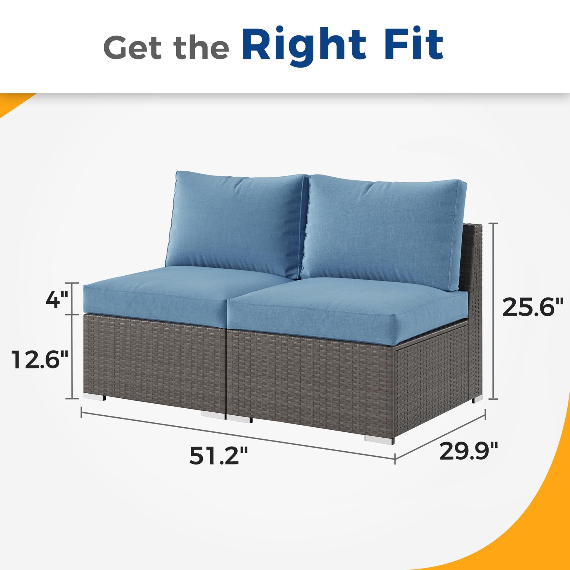 - UPGRADED CUSHION: Our outdoor patio armless Sofa uses a 4-inch thick sponge, these outdoor sectional sofa cushions are made of Olefin fabric with a smooth zipper. The cushion cover is fade-resistant and easy to rinse. A thicker resilient sponge adds extra comfort to each moment.
