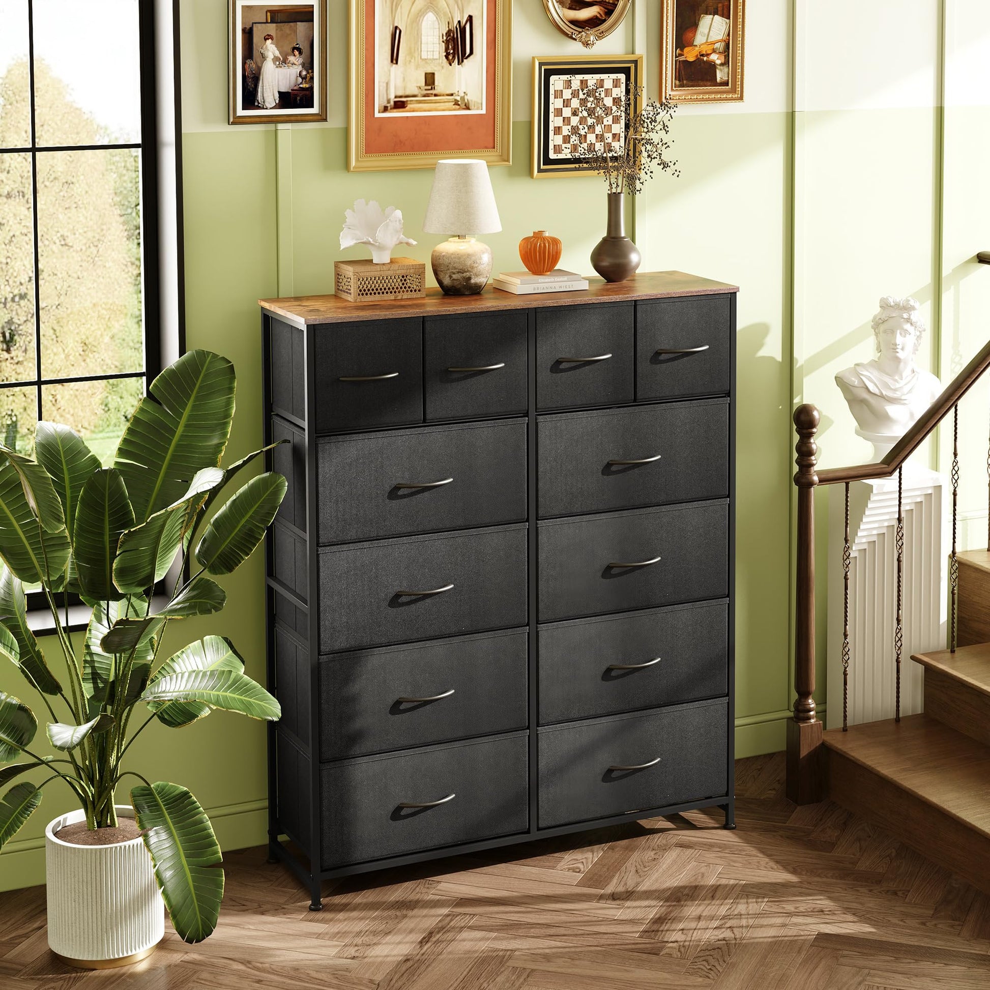 - This chest of drawers for bedroom features 12 deep portable drawers available in 2 sizes, the top 4 storage drawers are suitable for lingerie organization and the bottom 8 drawers are suitable for t-shirts, pants, scarves, socks, etc..
