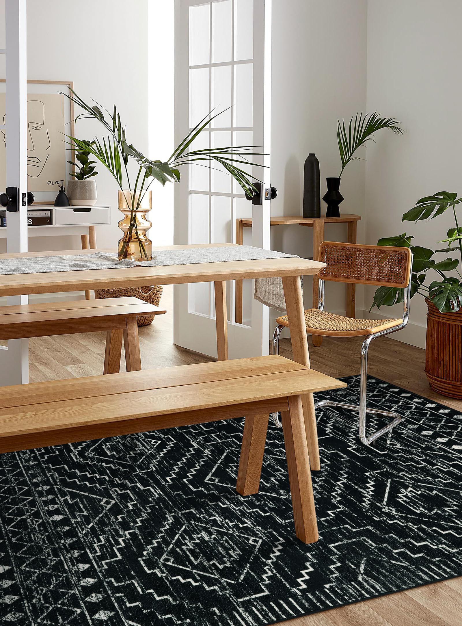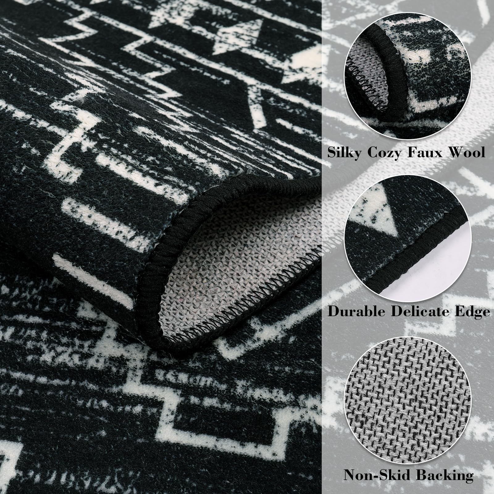 Moroccan Washable Rug 4x6, Black Boho Living Room Area Rug, Non-Slip Farmhouse Bedroom Carpet Dorm Room