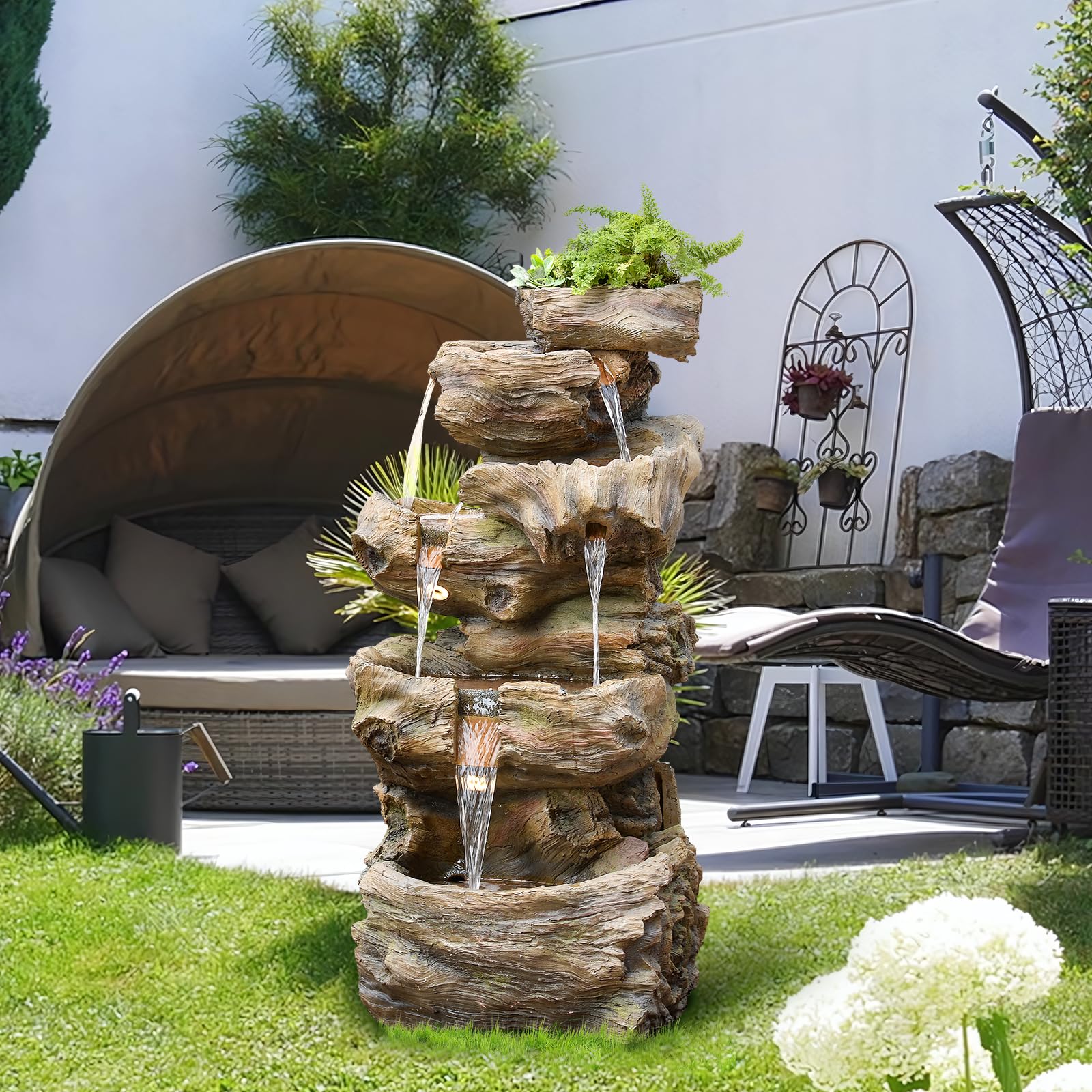 Wood Waterfall Fountain Outdoor 5 Tiers Large Cascading Rock Waterfall Outdoor