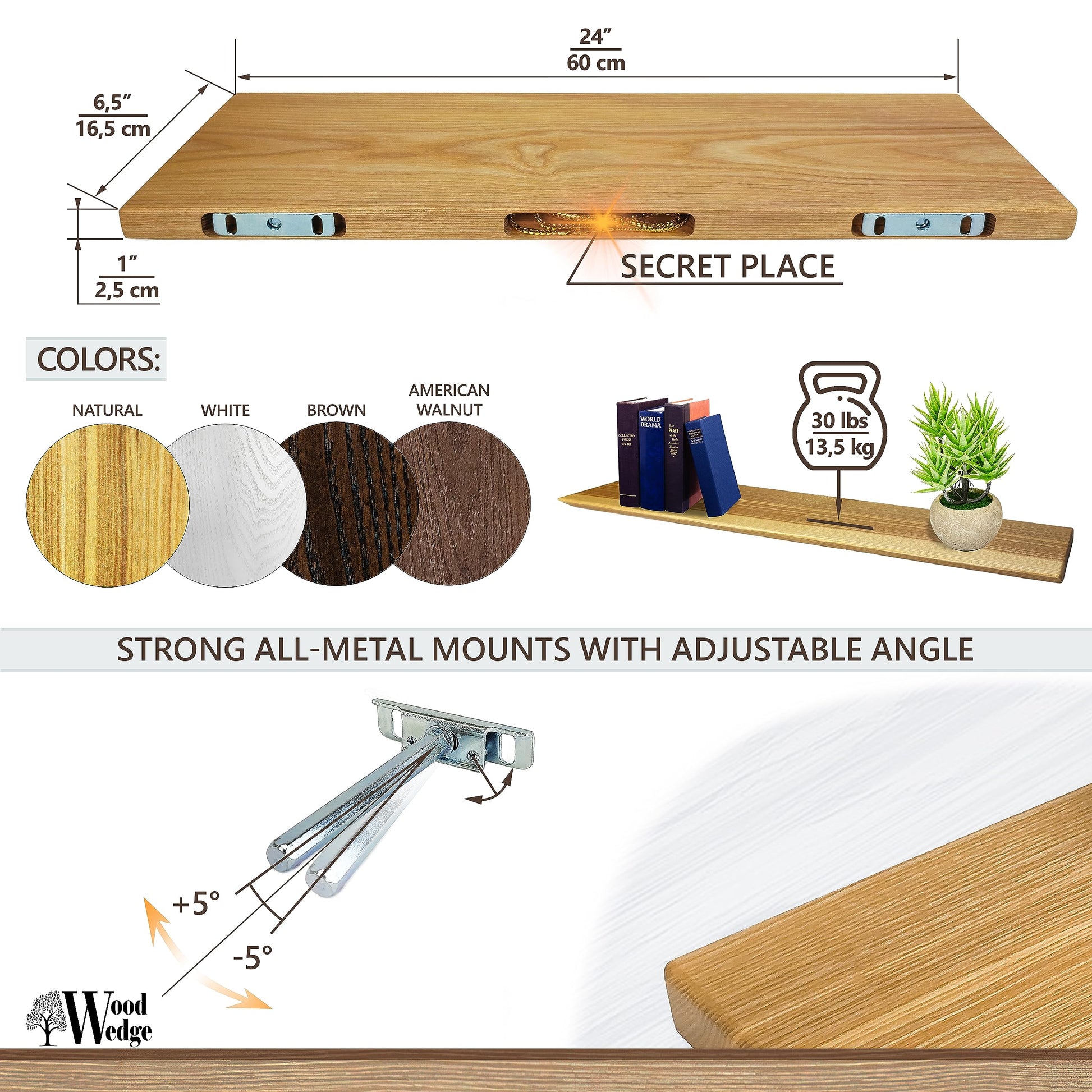 - UNIQUE and NATURAL: floating shelves with beveled edges are made of real wood and treated with mineral oil and beeswax