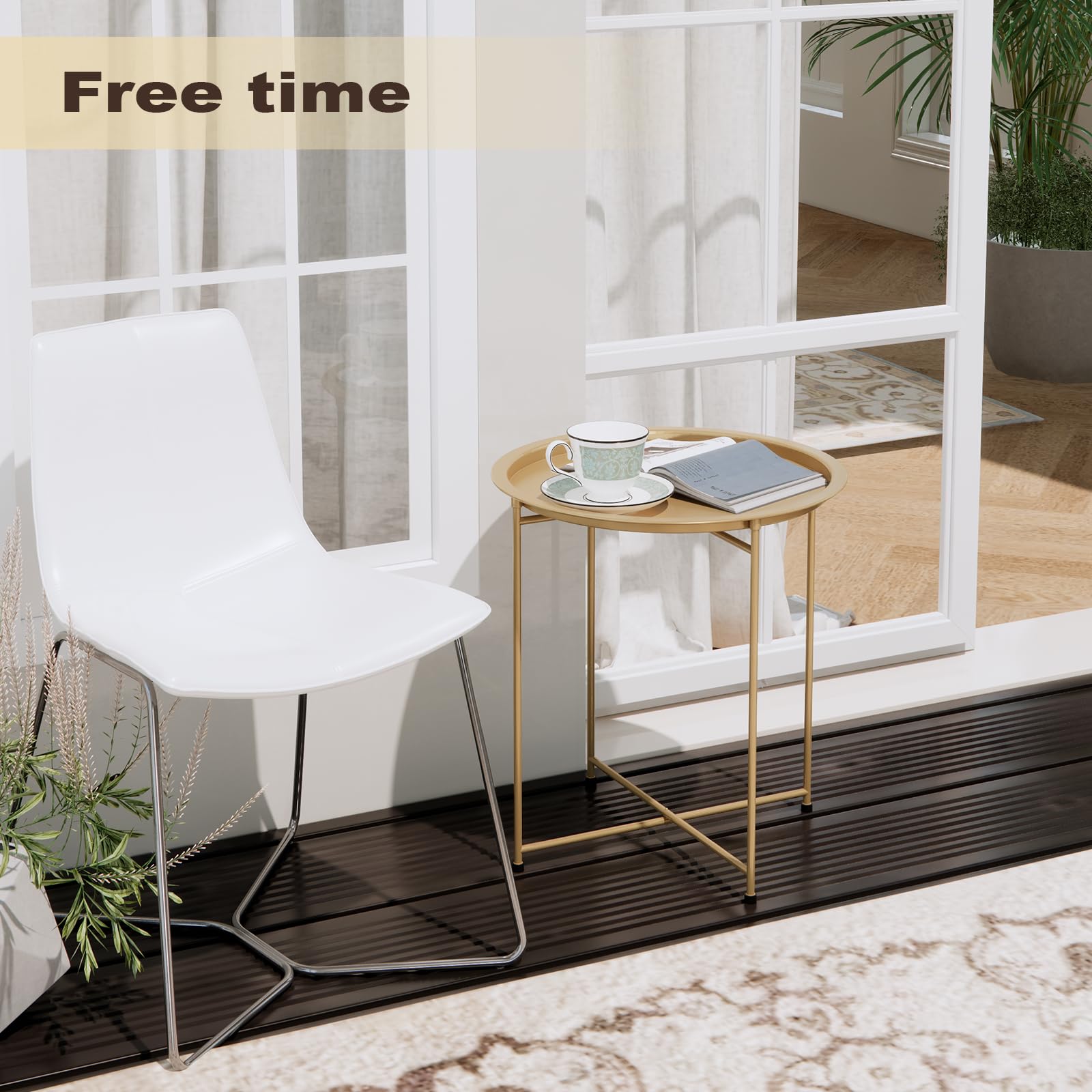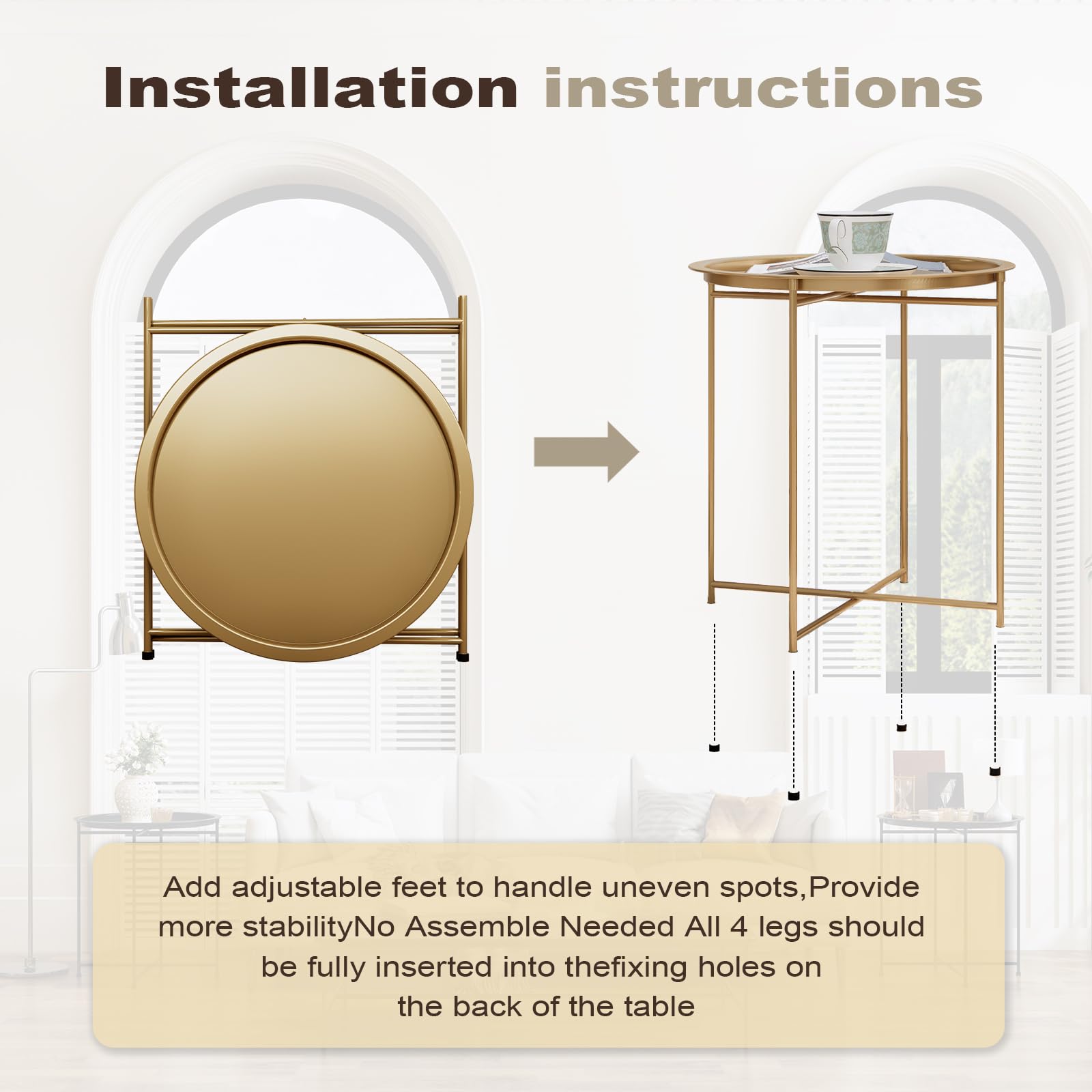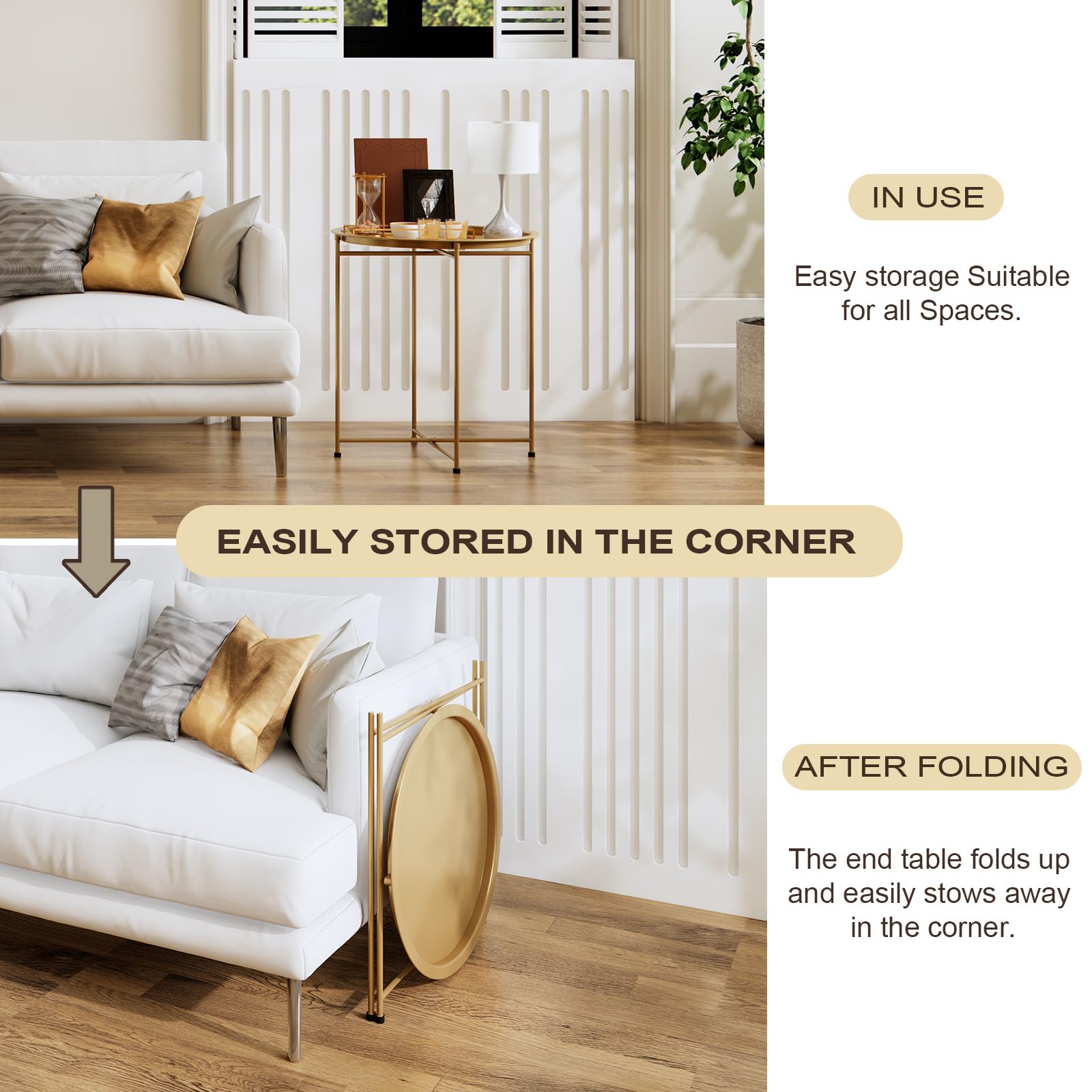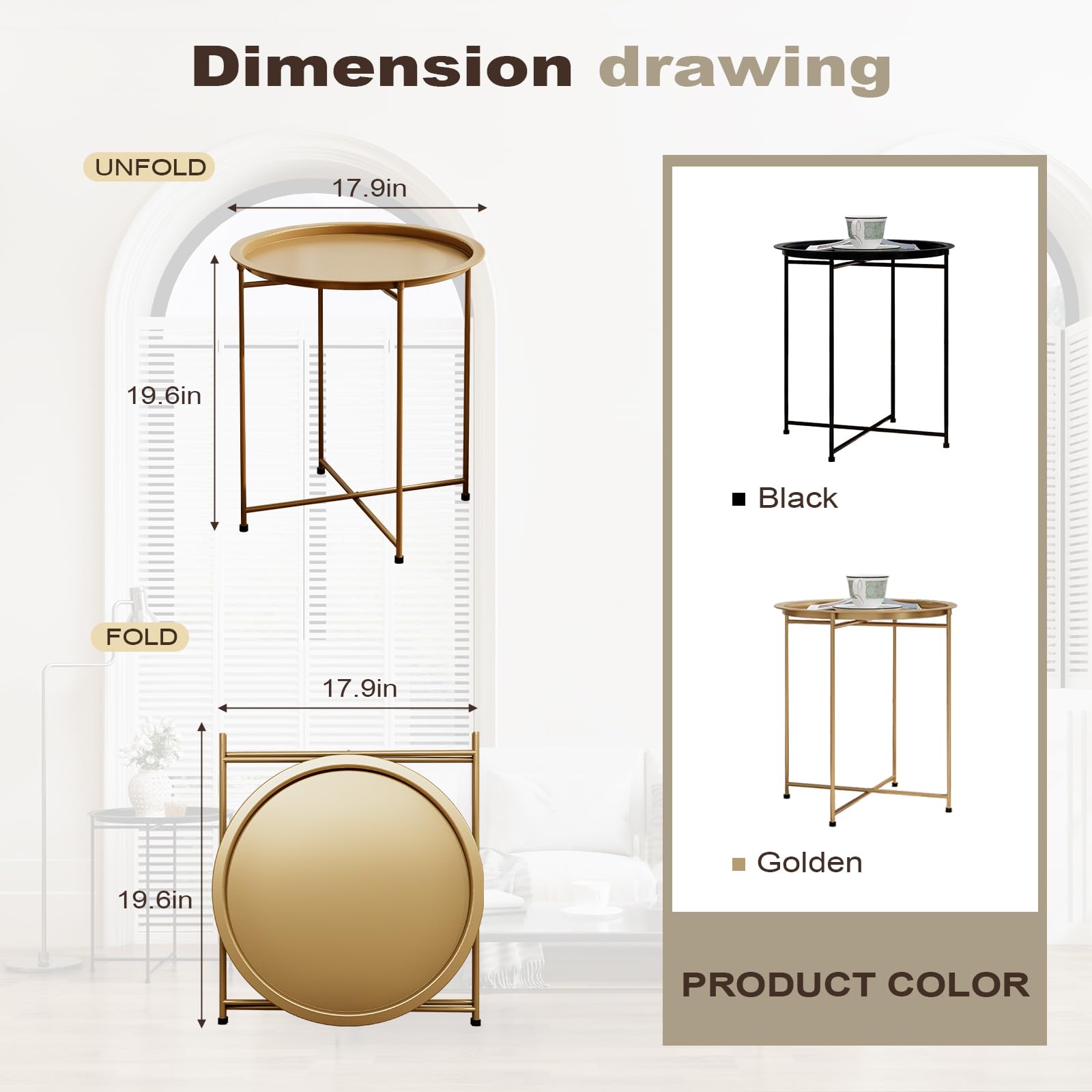 - Can be used as a small round side table, coffee table, tray side table, or sofa table, this product will suit your needs. It's suitable for storing your essentials both indoors and outdoors, whether outside in your garden, patio, bedroom, or living room.