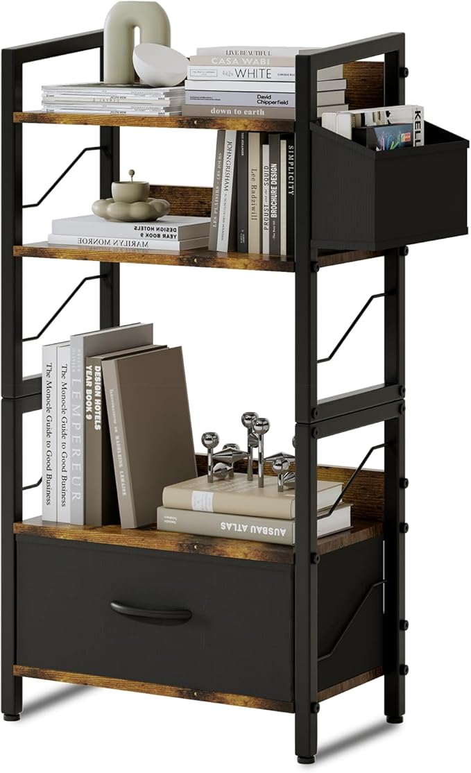 - Space-Saving: Small bookshelf features side storage pockets and foldable fabric drawers, maximizing storage space for items that are difficult to organize.