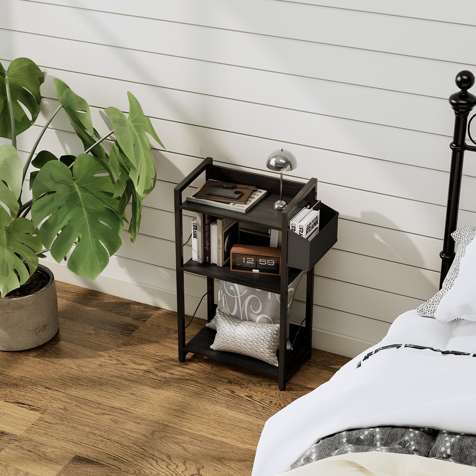 Small Bookshelf, 3 Tier Wood Book Shelf with Drawe, Small Bookshelf for Small Spaces, Industrial Narrow Bookcase Storage Organizer for Living Room, Bedroom, and Home Office (Black, 3 Tier)