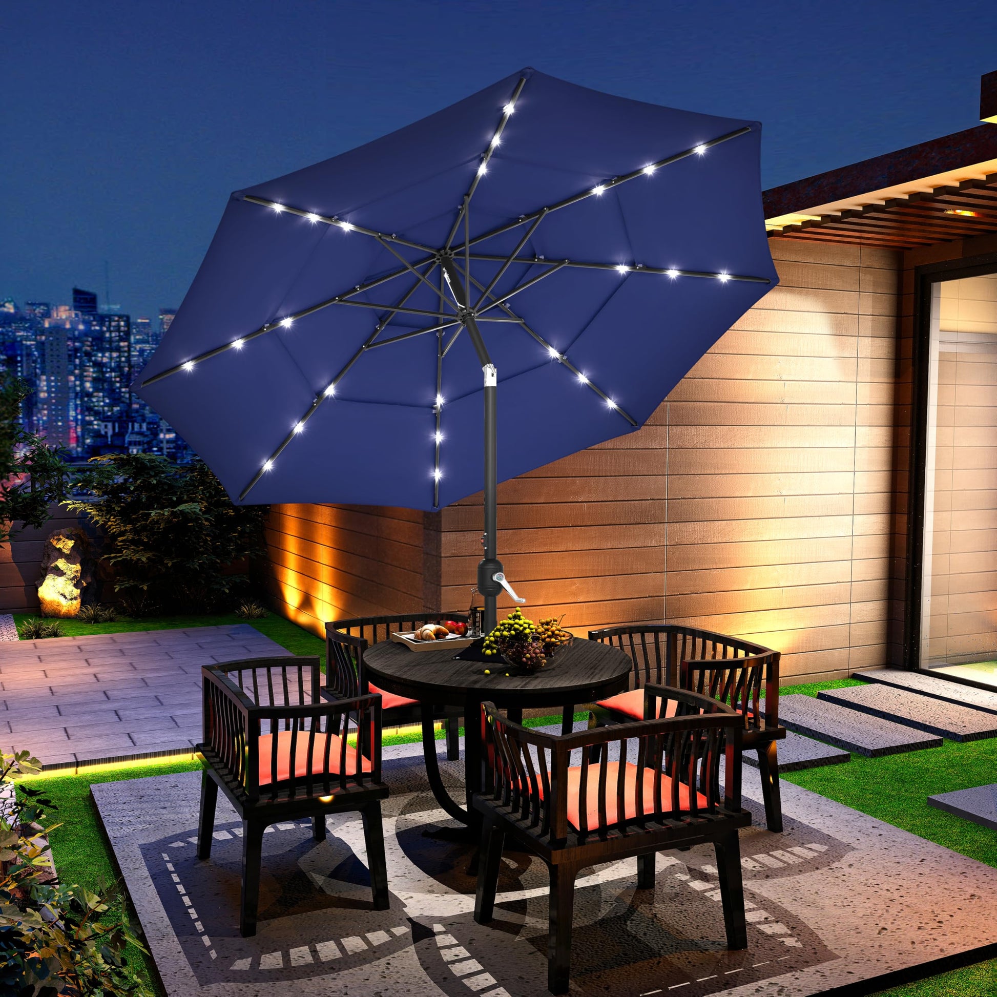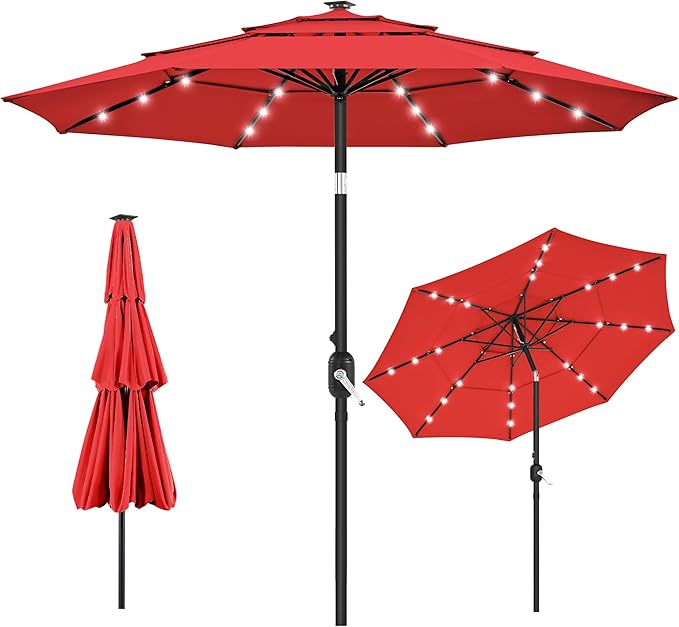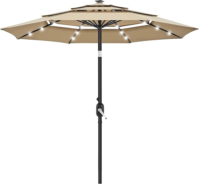 10ft 3-Tier Vented Solar Patio Umbrella, Table Outdoor Market Umbrella with 24 LED Lights