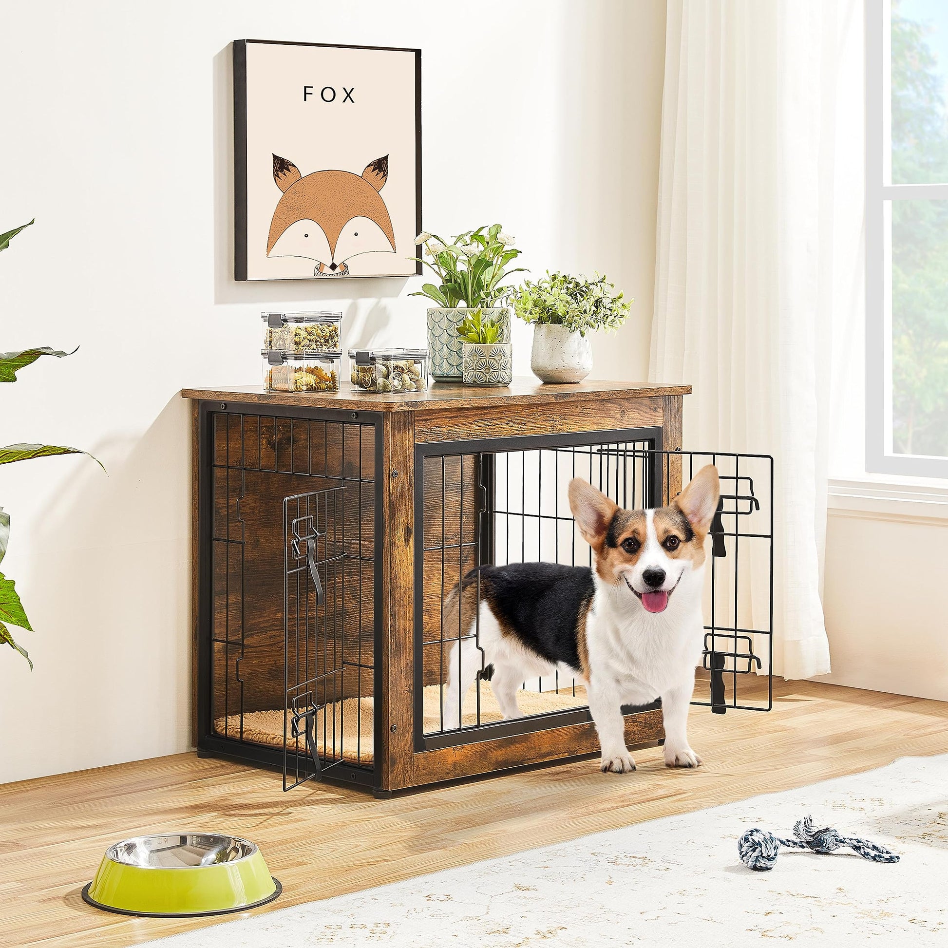27.5'' Dog Crate Furniture with Cushion Wooden Dog Crate with Double Doors/Adjustable