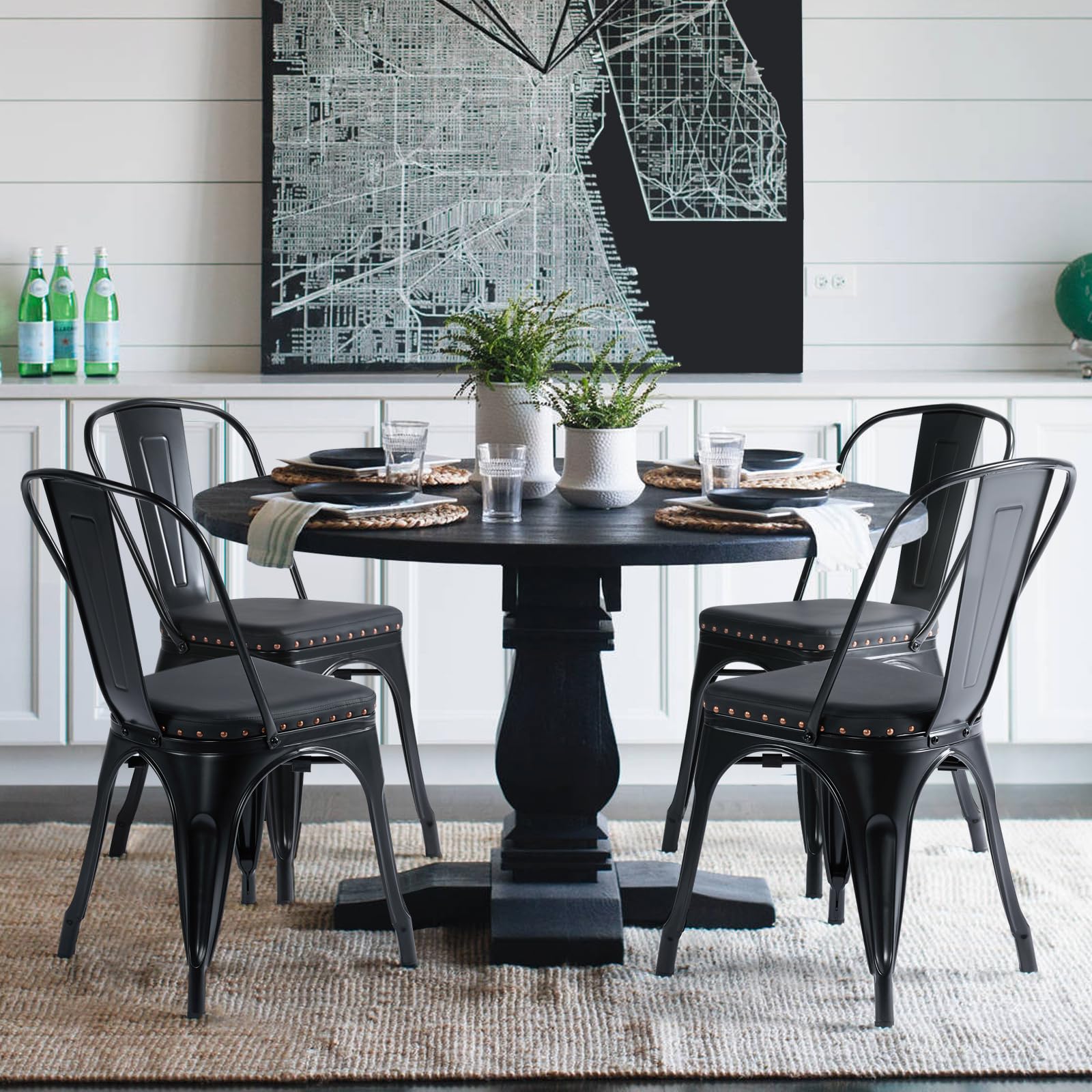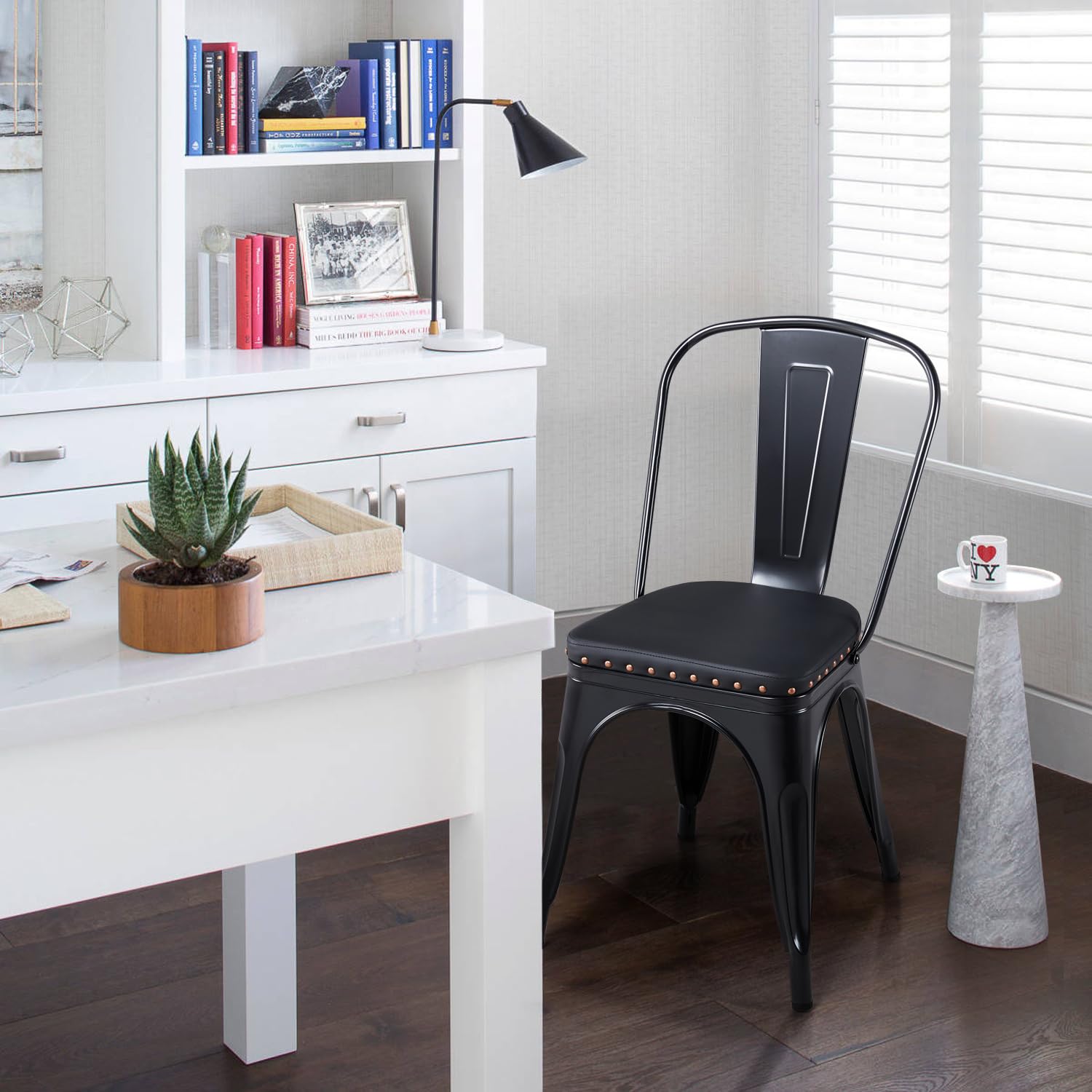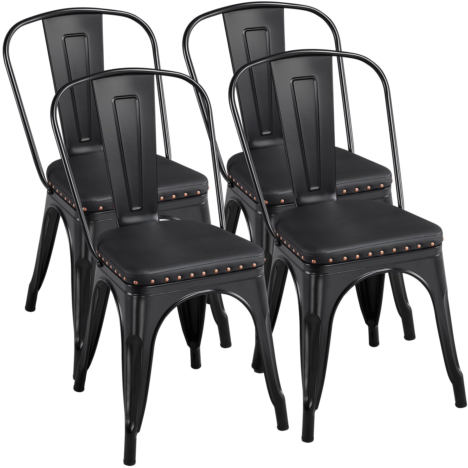 4pcs Metal Dining Chairs with PU Leather Seat High Back Soft Cushioned Industrial Classic Iron Chairs