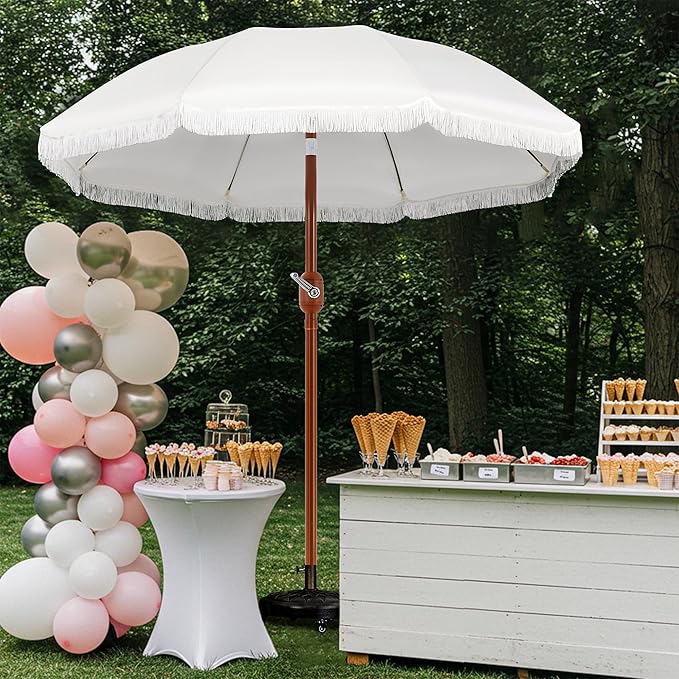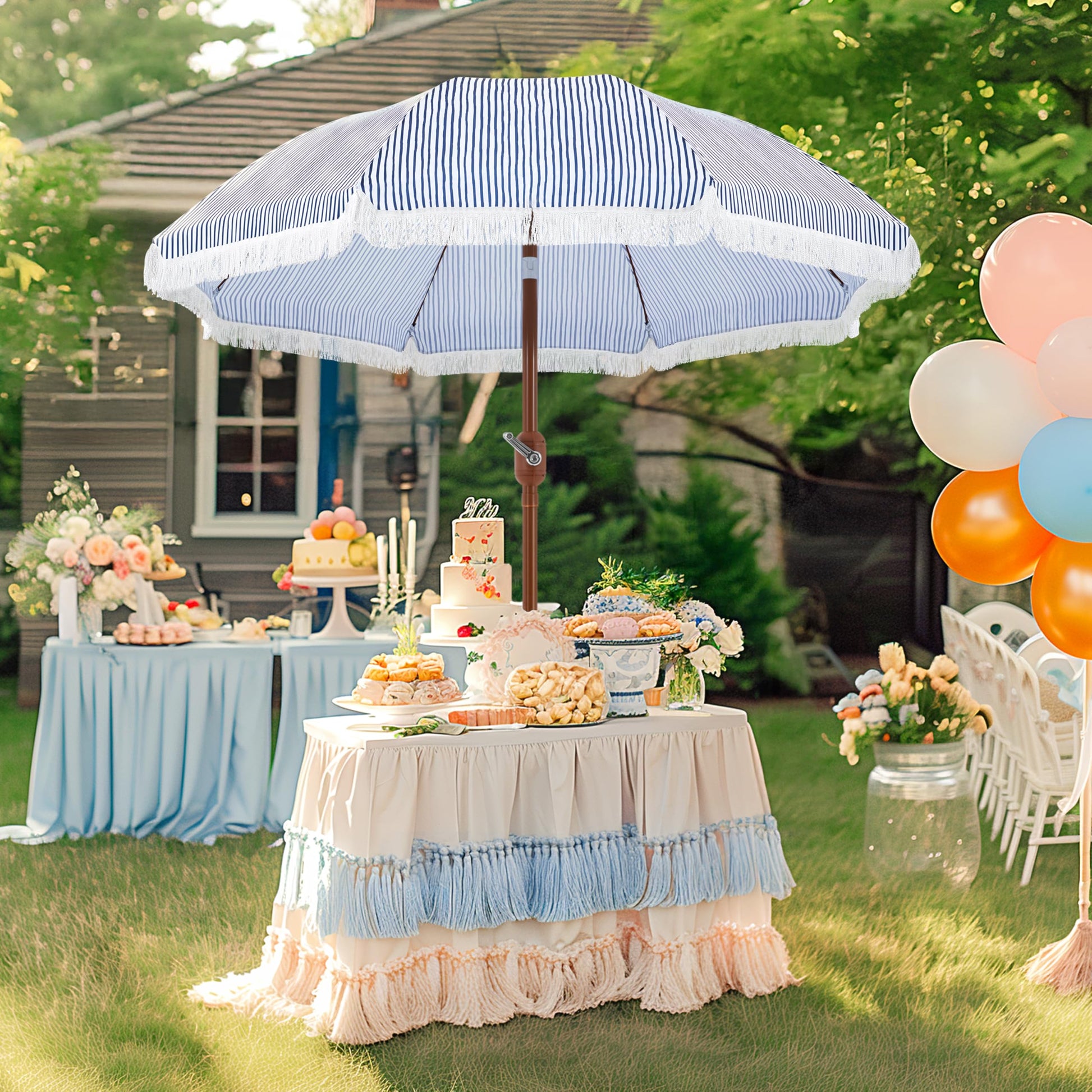 9ft Patio Umbrella with Tassels, Fringe Portable Beach Umbrella, Umbrella Outdoor Patio