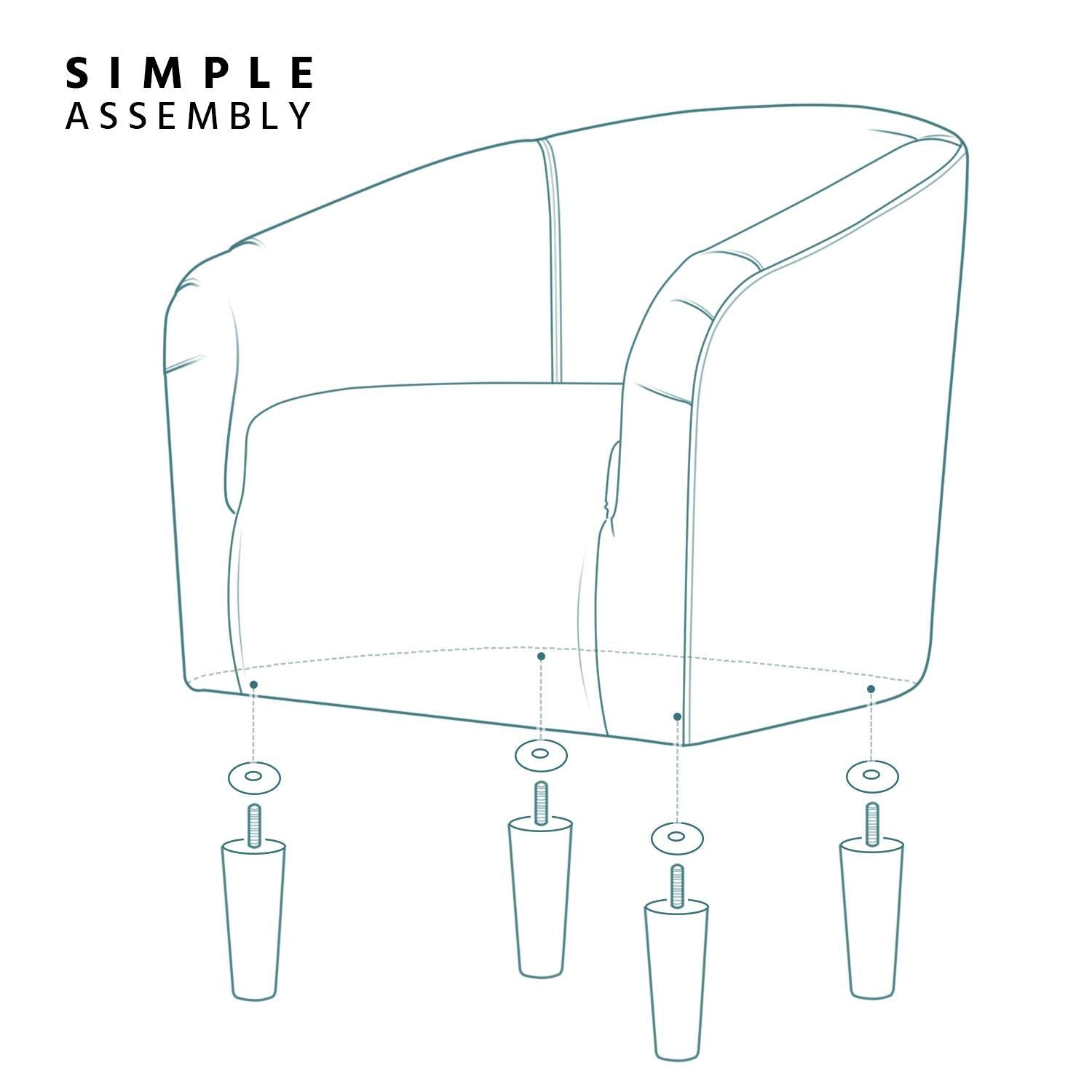 - 5-minute setup The assembly for this accent chair is as easy as cake. Just fix the four legs to the bottom and your new chair is ready to serve