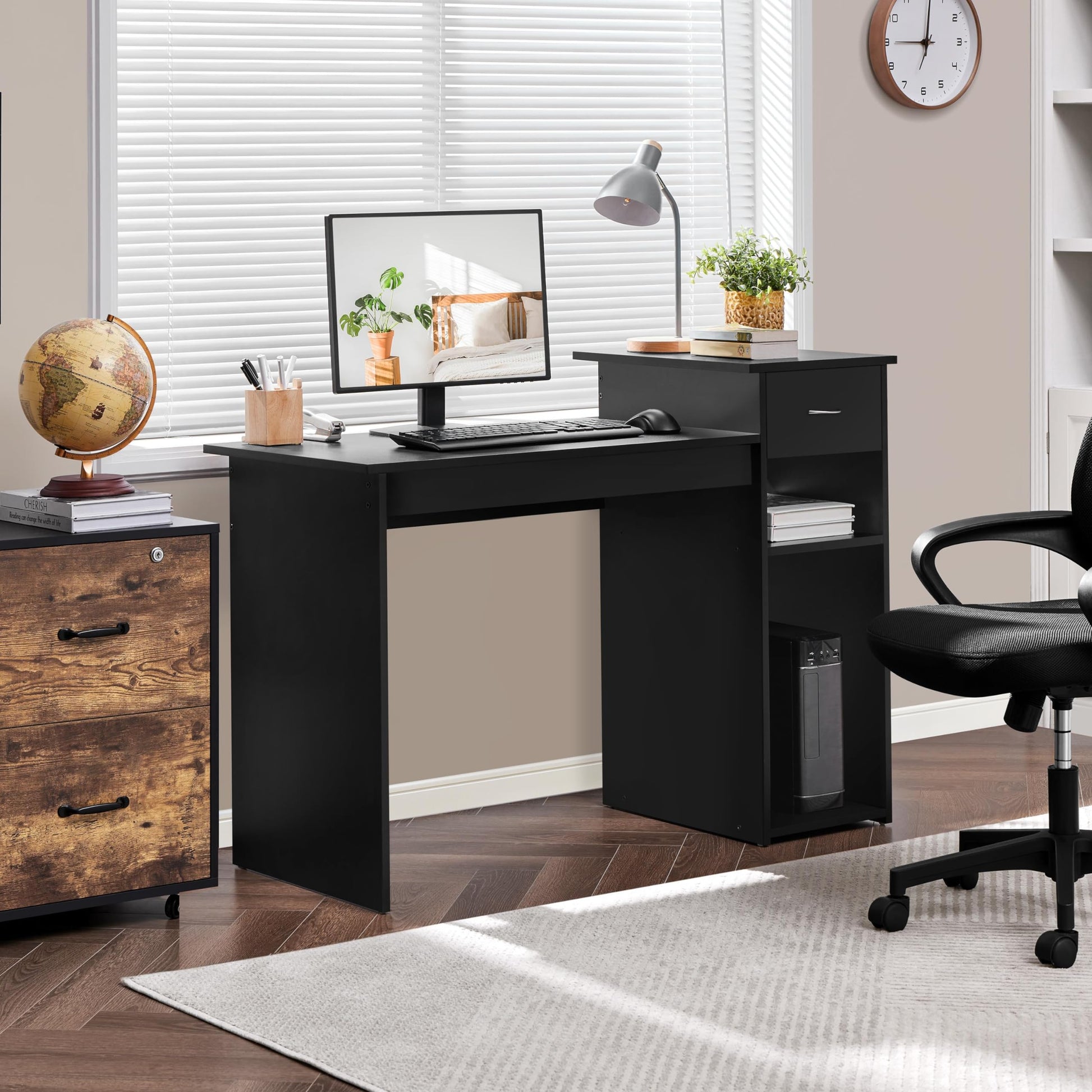 - Featuring a spacious tabletop, a smooth-sliding drawer, a CPU stand, and a storage shelf, this versatile computer desk can serve perfectly as an office desk, or a gaming station in your home office, bedroom, and study. It also works great in offices or stores.