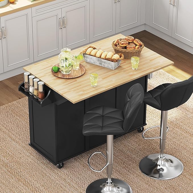 Kitchen Island with Drop-Leaf Breakfast Bar, 53" Width Kitchen Cart