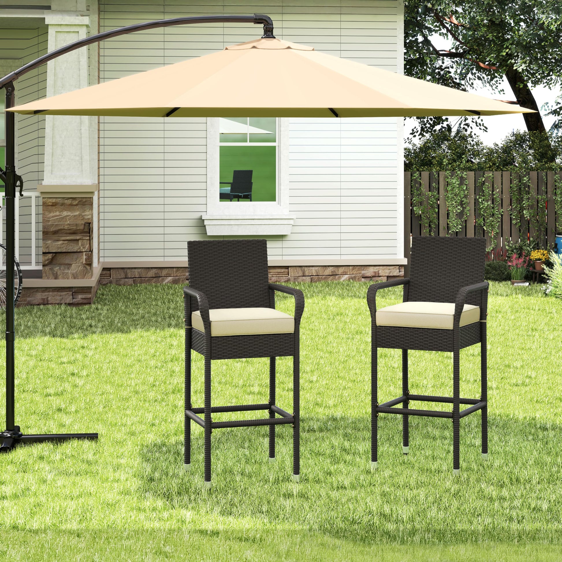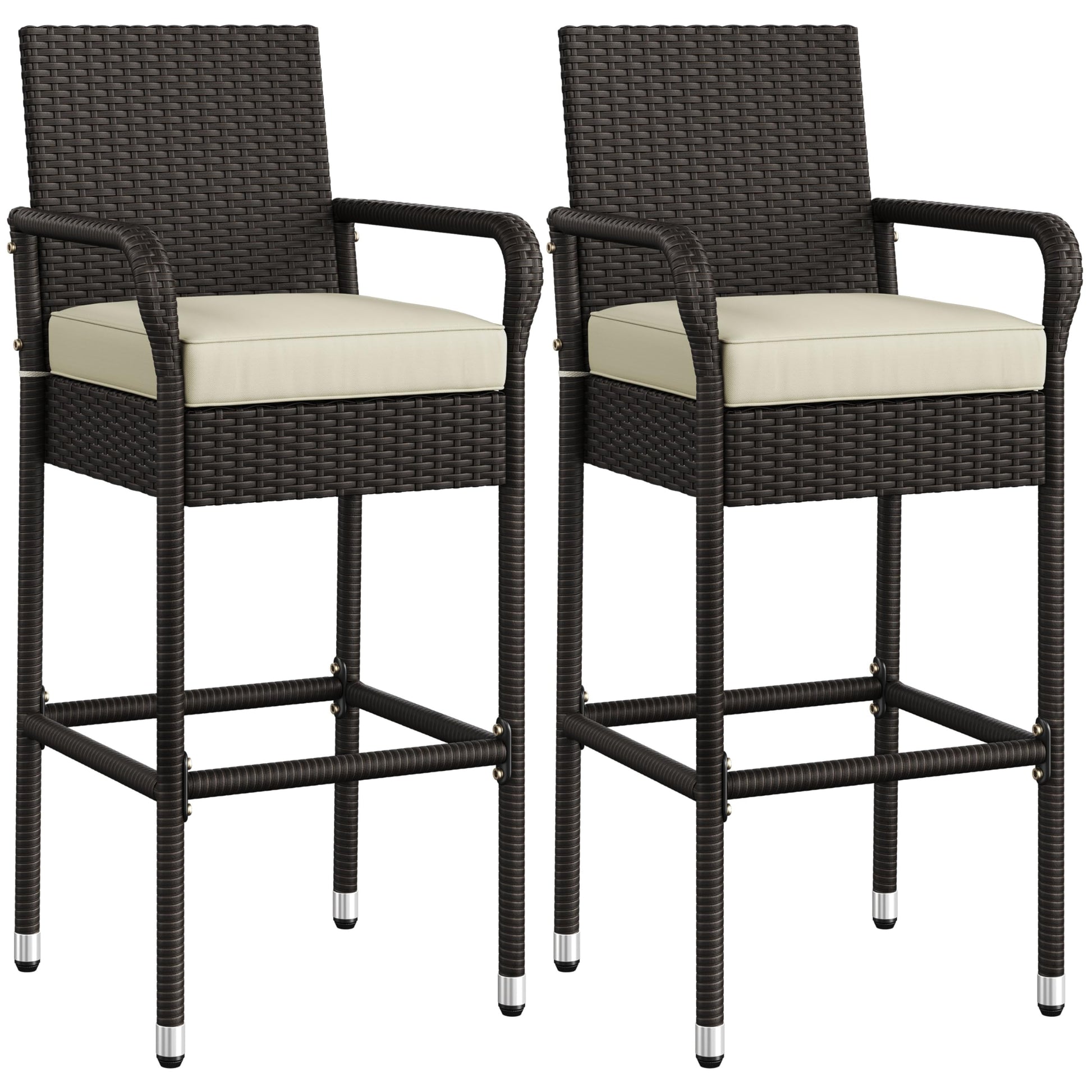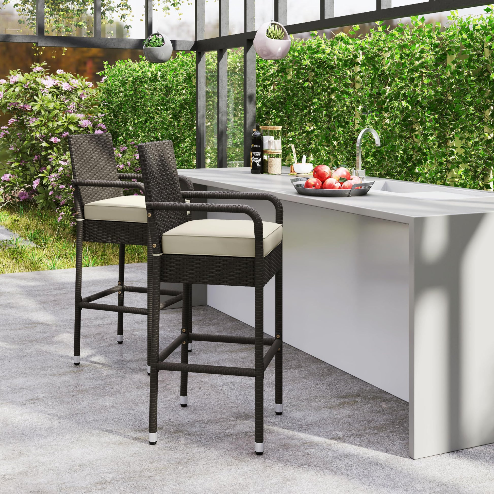 Outdoor Bar Stools Set of 2, Patio Wicker Chairs with Armrests