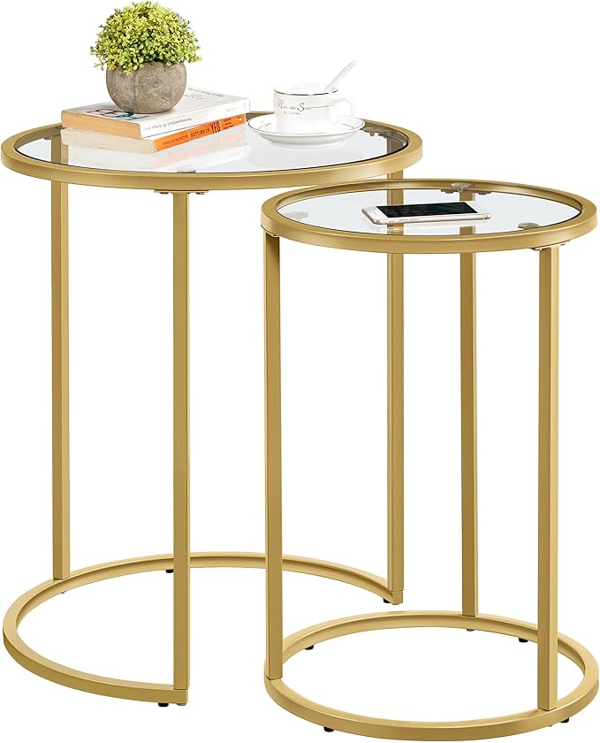 - Sturdy & Safe: Constructed with a powder-coated iron frame, durable tempered glass tabletop, and adjustable foot pads, these elegant accent tables ensure durability and stability for long-time service