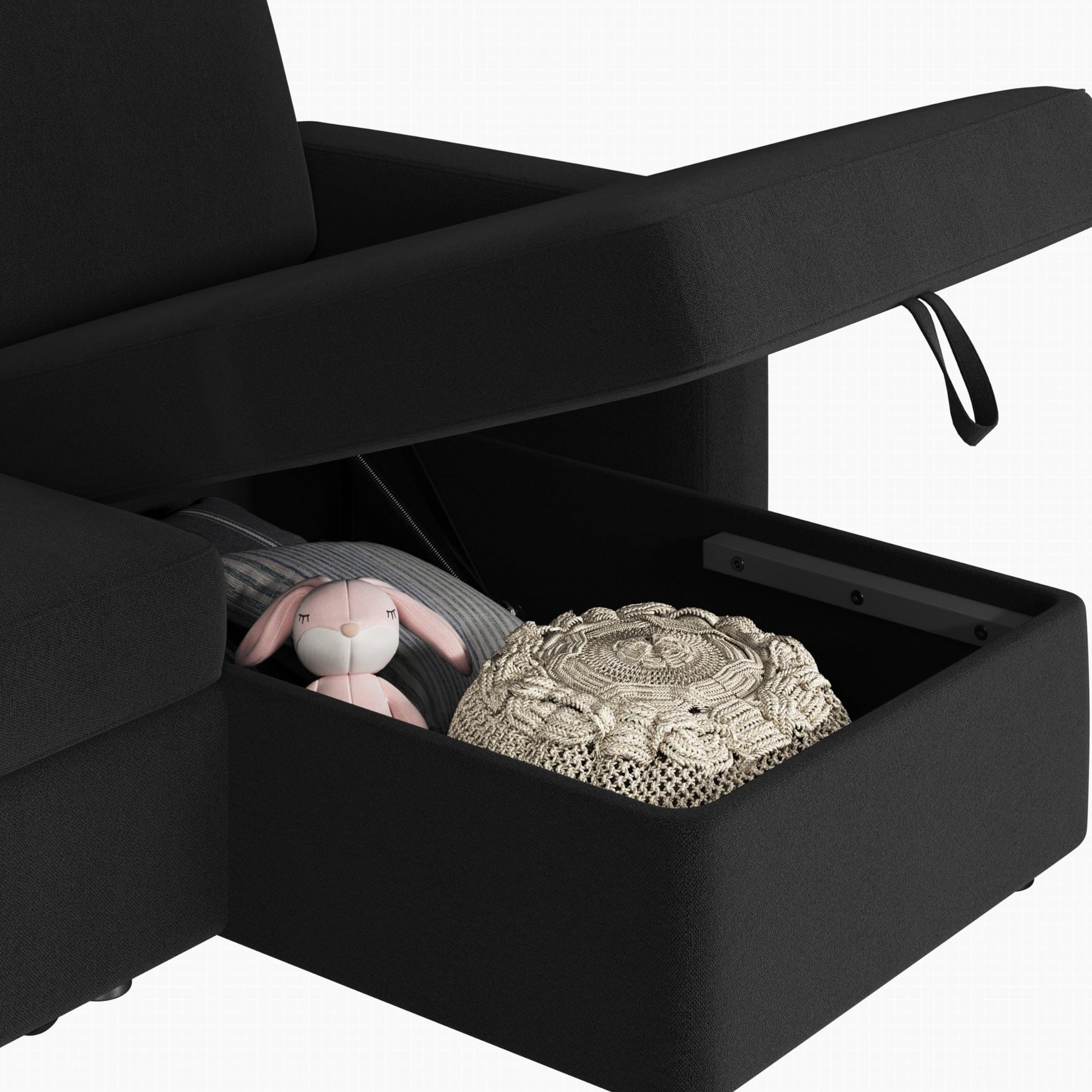 - SPACIOUS HIDDEN STORAGE COMPARTMENT: The storage chaise of this sleeper sectional sofa conceals space of 126 cm L × 58 cm W × 21 cm D for keeping blankets and pillows clean and close at hand under its seat. The lid stays open as you take things in and out.